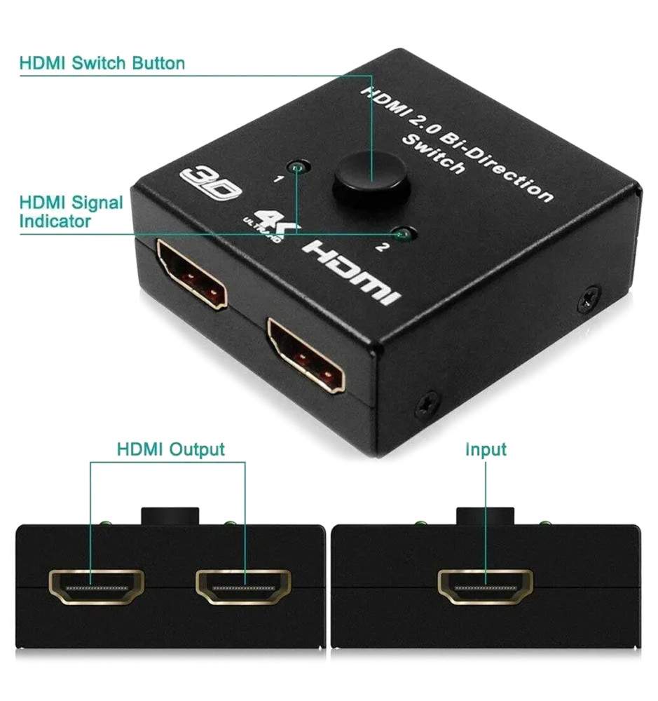 Niezwykle kompaktowy, dwukierunkowy przełącznik HDMI w standardzie HDMI 2.0, oferujący obsługę rozdzielczości do 4K przy 60Hz z HDR.