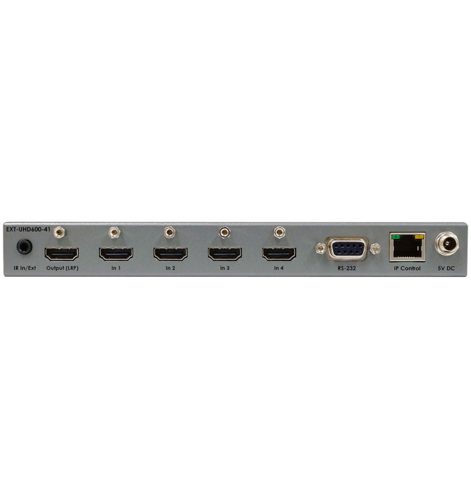 Gefen EXT-UHD600-41 to profesjonalny switch - przełącznik sygnału pozwalający na kierowanie sygnału z czterech źródeł HDMI o rozdzielczości 4K do pojedynczego wyświetlacza 4K lub innego urządzenia wideo. Przycisk "Select", umieszczony na przednim panelu, służy do wygodnego i łatwego przełączania pomiędzy źródłami sygnału. Nisko-profilowa, kompaktowa obudowa przełącznika umożliwia umieszczenie urządzenia w ciasnych przestrzeniach oraz pozwala na montaż powierzchniowy.