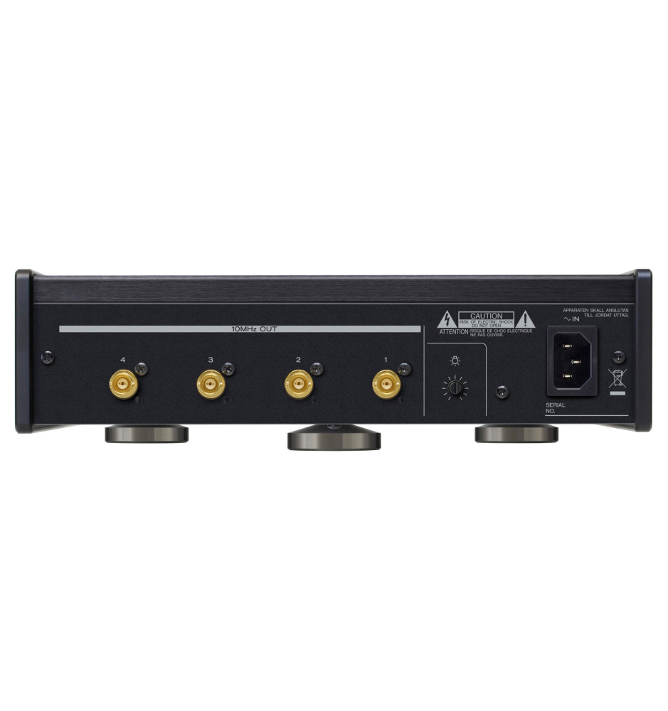 W modelu CG-10M-X zastosowano referencyjny oscylator OCXO, którego częstotliwość stabilizowana jest za pomocą kontroli temperatury. Dzięki temu urządzenie osiąga dokładność rzędu +/-0,1 ppm i stabilność częstotliwości na poziomie +/-3 ppb. Tak imponująca precyzja minimalizuje zniekształcenia cyfrowe (jitter), gwarantując czystszy i bardziej dynamiczny dźwięk.