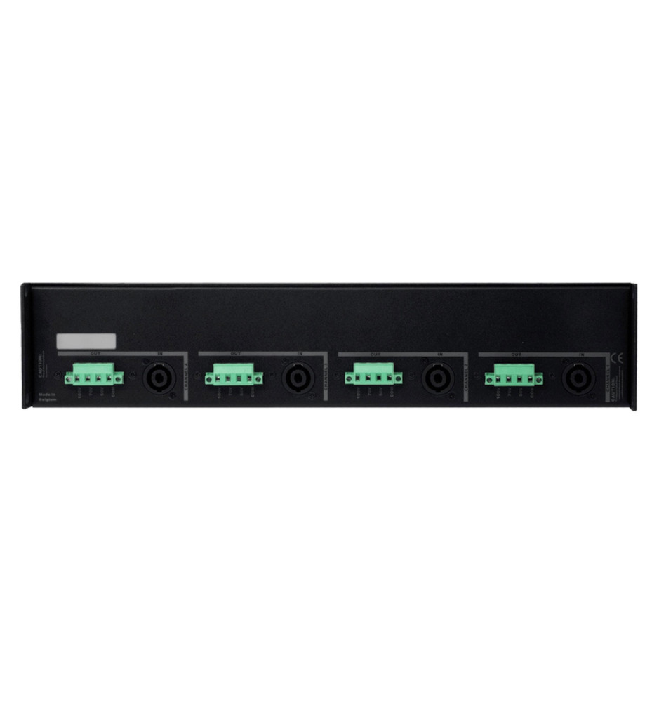 Audac Q4TR składa się z 4 niezależnych transformatorów liniowych audio o mocy 600 W każdy. Oferuje dla każdego z kanałów wejście typu speakon oraz 4-pinowe złącze Euro Terminal na odczepy mocy dla zastosowań wymagających podłączenia do instalacji 100 V, 70 V i 50 V.