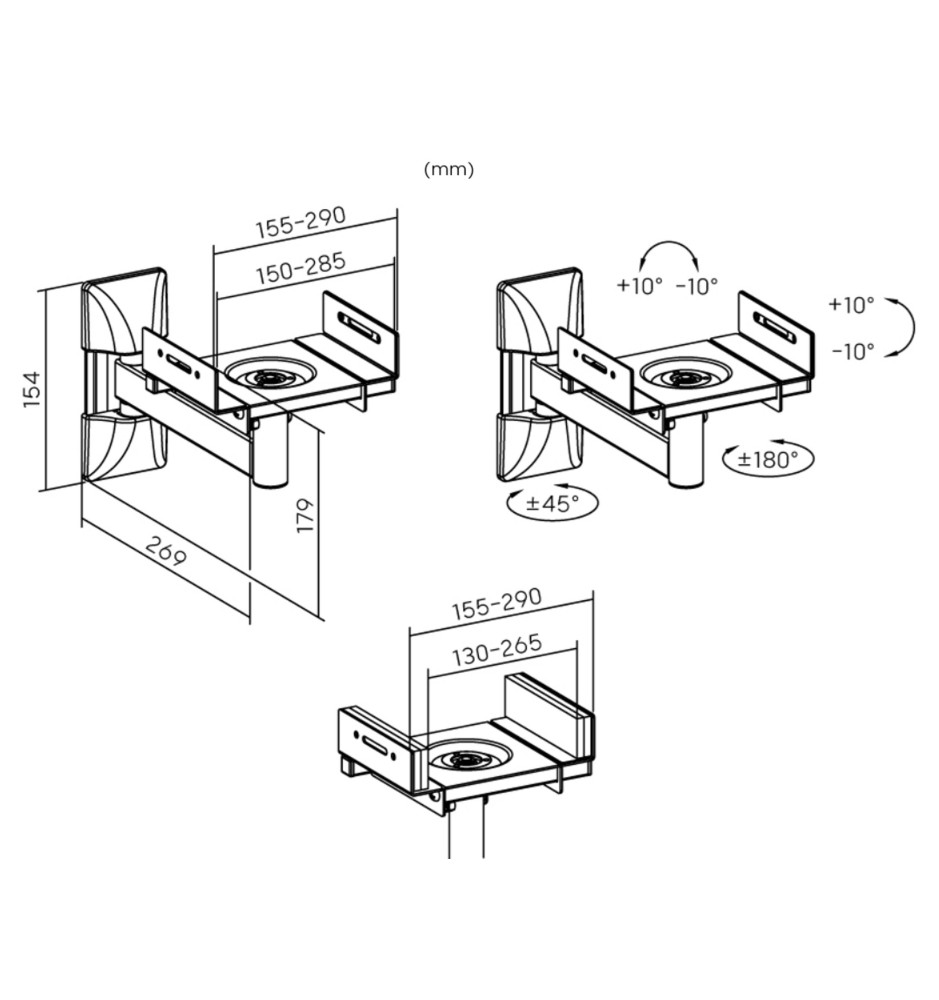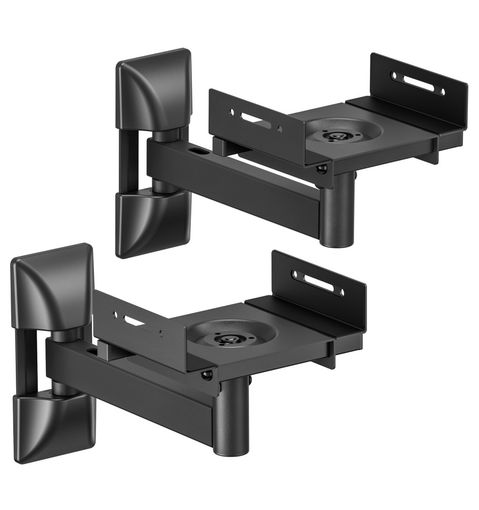 Szeroki zakres regulacji obrotu oraz pochylenia umożliwia optymalne ustawienie kolumn głośnikowych w pomieszczeniu, a wbudowany kanał kablowy pozwala na dyskretne i estetyczne poprowadzenie przewodów.