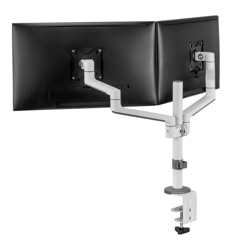 Neomounts DS60-425 pozwala na zainstalowanie na nim dwóch monitorów o przekątnej ekranu od 17 do 27 cali i wadze maksymalnej do 8 kg (na ekran). Uchwyt korzysta z rozstawów śrub w standardzie VESA 75x75 i 100x100, co jest powszechnie stosowanym i sprawdzonym rozwiązaniem. Wykorzystanie tego uchwytu pozwoli zaoszczędzić dużo miejsca na biurku, które normalnie zajęłyby aż dwa monitory.