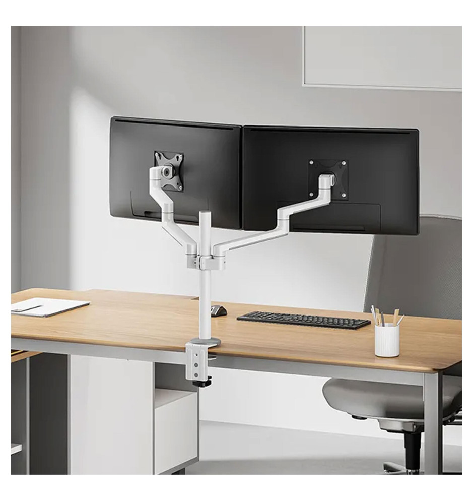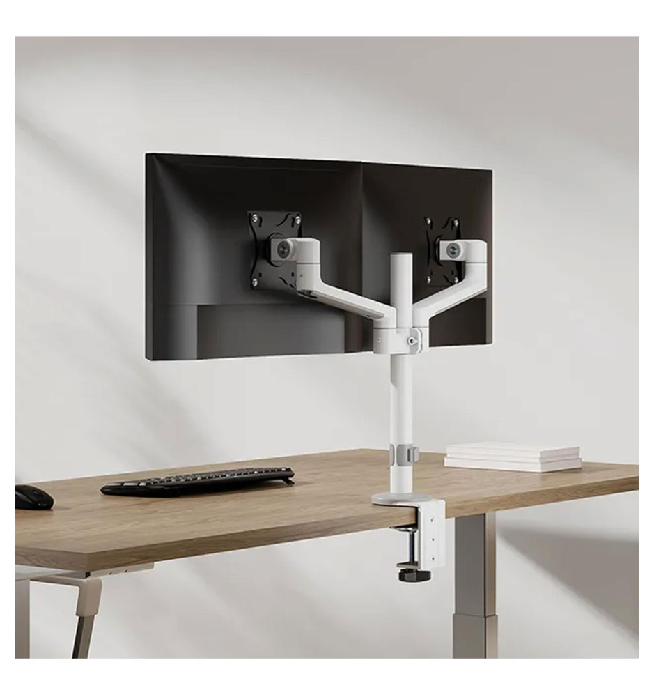 Solidny i funkcjonalny uchwyt umożliwiający wygodną pracę z dwoma monitorami przy biurku. Zalecana rozdzielczość ekranu, z której wygodnie można korzystać wynosi między 17", a 27".