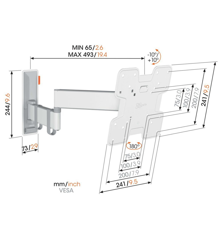 TVM 3243 jest regulowanym uchwytem OneFinger™ Movement, który dzięki specjalnym łożyskom, oferuje możliwość pochylenia ekranu w zakresie od -10° do +10° oraz bezwysiłkowego, płynnego obrotu do 180°. Dołączony klips pozwala na wygodne poprowadzenie i przymocowanie przewodów do ramienia.