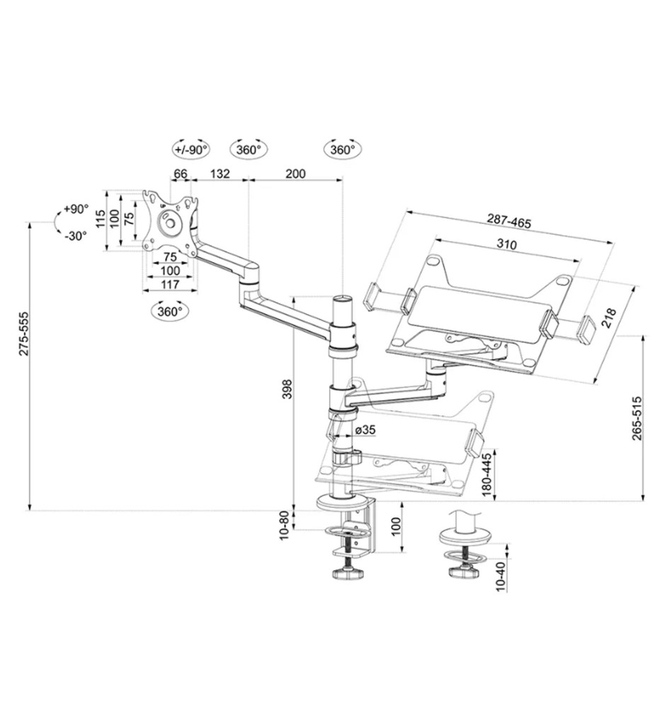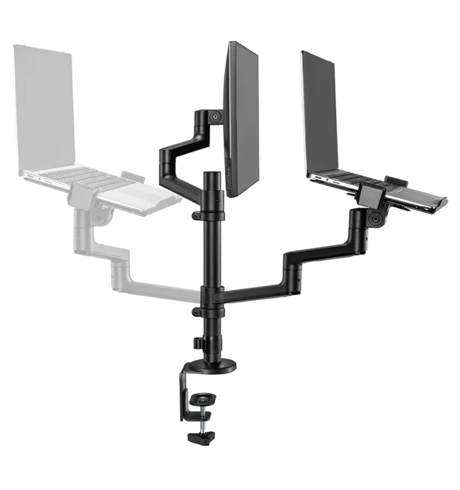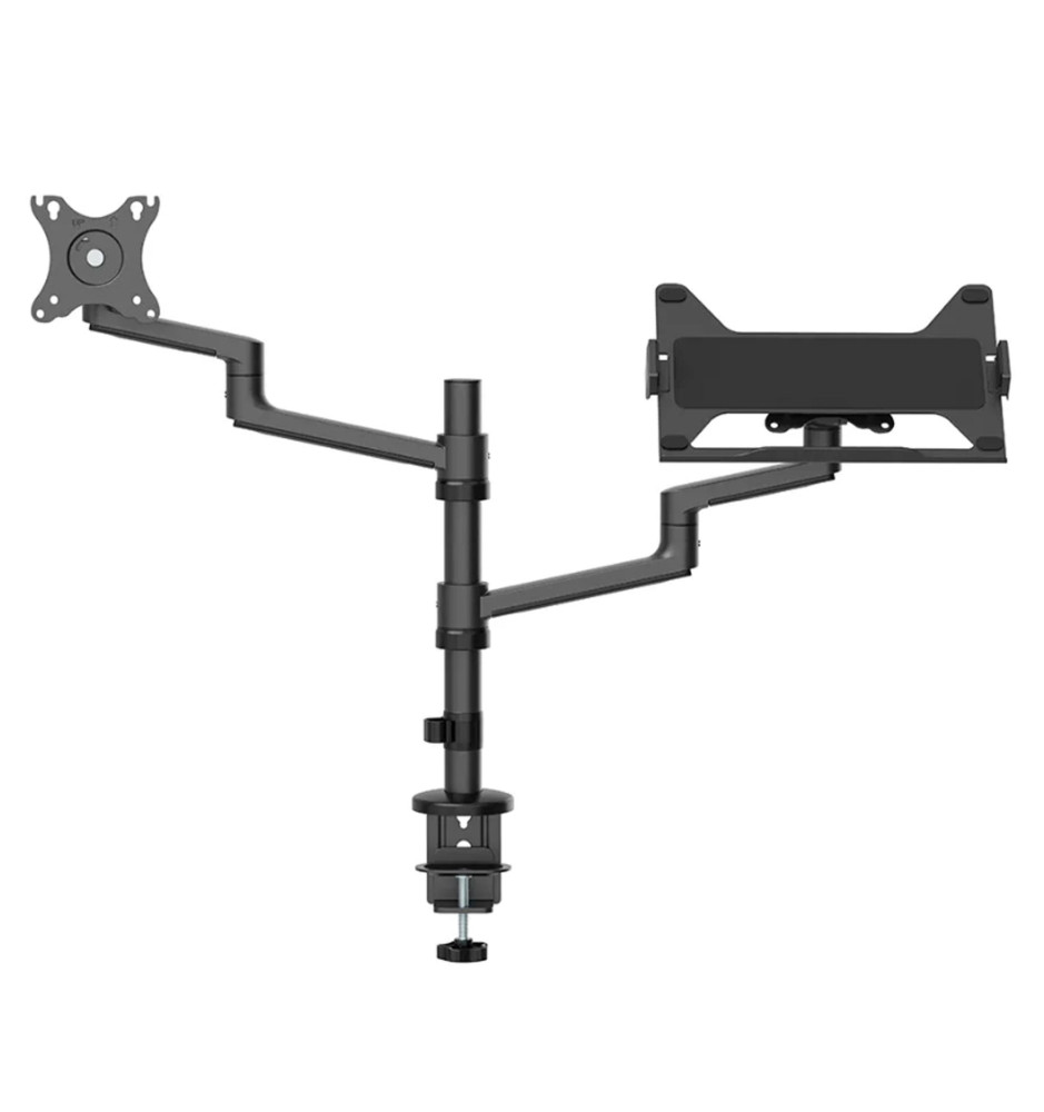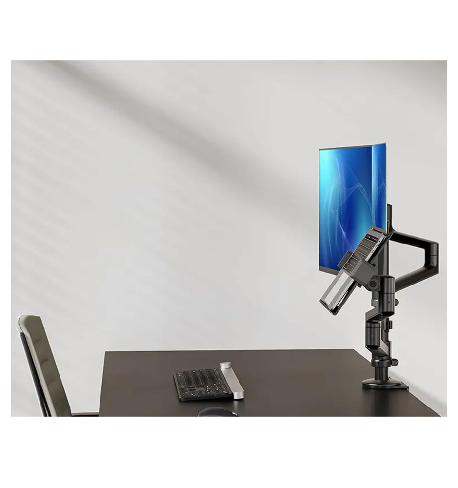 Solidny i funkcjonalny uchwyt pozwalający na umieszczenie na nim pełnowymiarowego monitora komputerowego (do 27") oraz laptopa. Pozwala to zaoszczędzić miejsce na biurku i przyjąć optymalną pozycję podczas korzystania z urządzenia. Neomounts DS20-425BL2 można szybko i sprawnie przytwierdzić do biurka za sprawą klamry zaciskowej.