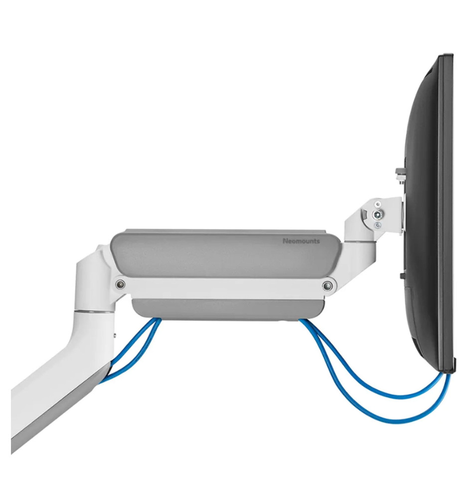 Umieszczenie monitora na uchwycie Neomounts DS70PLUS-450 pozwala zaoszczędzić miejsce na biurku i przyjąć optymalną pozycję podczas korzystania z urządzenia. Uchwyt biurkowy można szybko i sprawnie przytwierdzić do biurka za pomocą klamry zaciskowej. Ponadto da się go łatwo regulować w szerokim zakresie, czy to pod kątem wysokości i głębokości, czy rotacji i pochylenia. Inteligentny wewnętrzny system zarządzania kablami zapewnia uporządkowane poprowadzenie przewodów.
