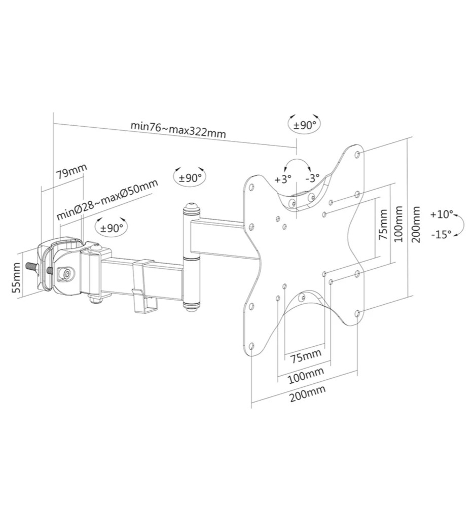 Przystosowany do montażu na słupach o średnicy 28 - 50 mm, wysokiej jakości uchwyt na regulowanym ramieniu, dedykowany do telewizorów, monitorów i innych płaskich ekranów o przekątnej od 23" do 42".