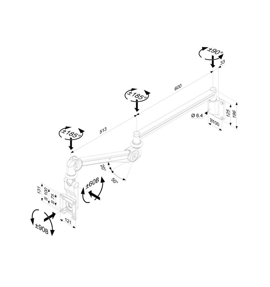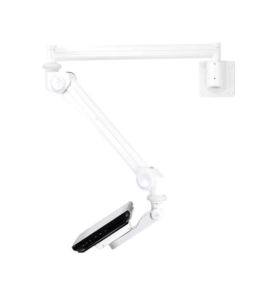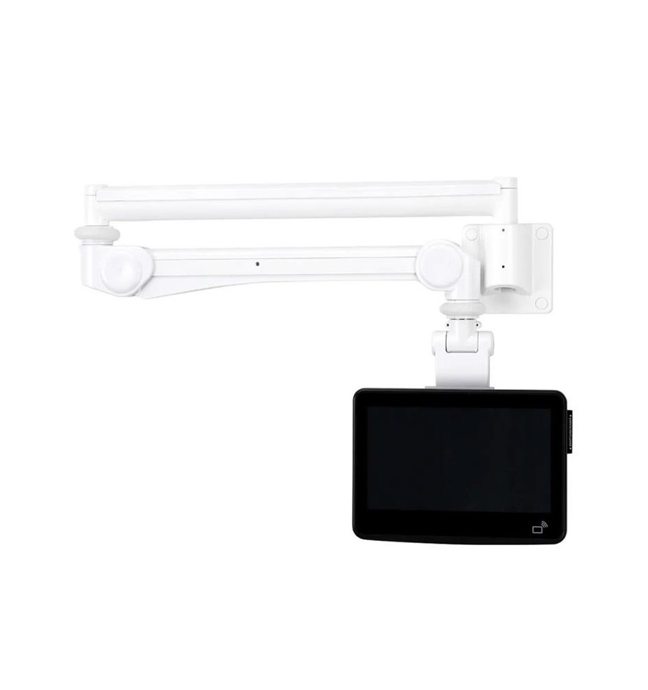 Głębokość uchwytu jest regulowana w zakresie od 0 do 115 cm oraz jego wysokość można w łatwy sposób regulować w zakresie od 115 do 135 cm. Możliwe jest także ustawienie wychylenia w zakresie 60° oraz regulacji w poziomie 370°. Pozwala to na uzyskanie idealnego kąta widzenia, co przełoży się na komfortową pracę. Uchwyt jest odpowiedni dla ekranów zgodnych z układem otworów montażowych VESA w zakresie od 75x75 do 100x100 mm.