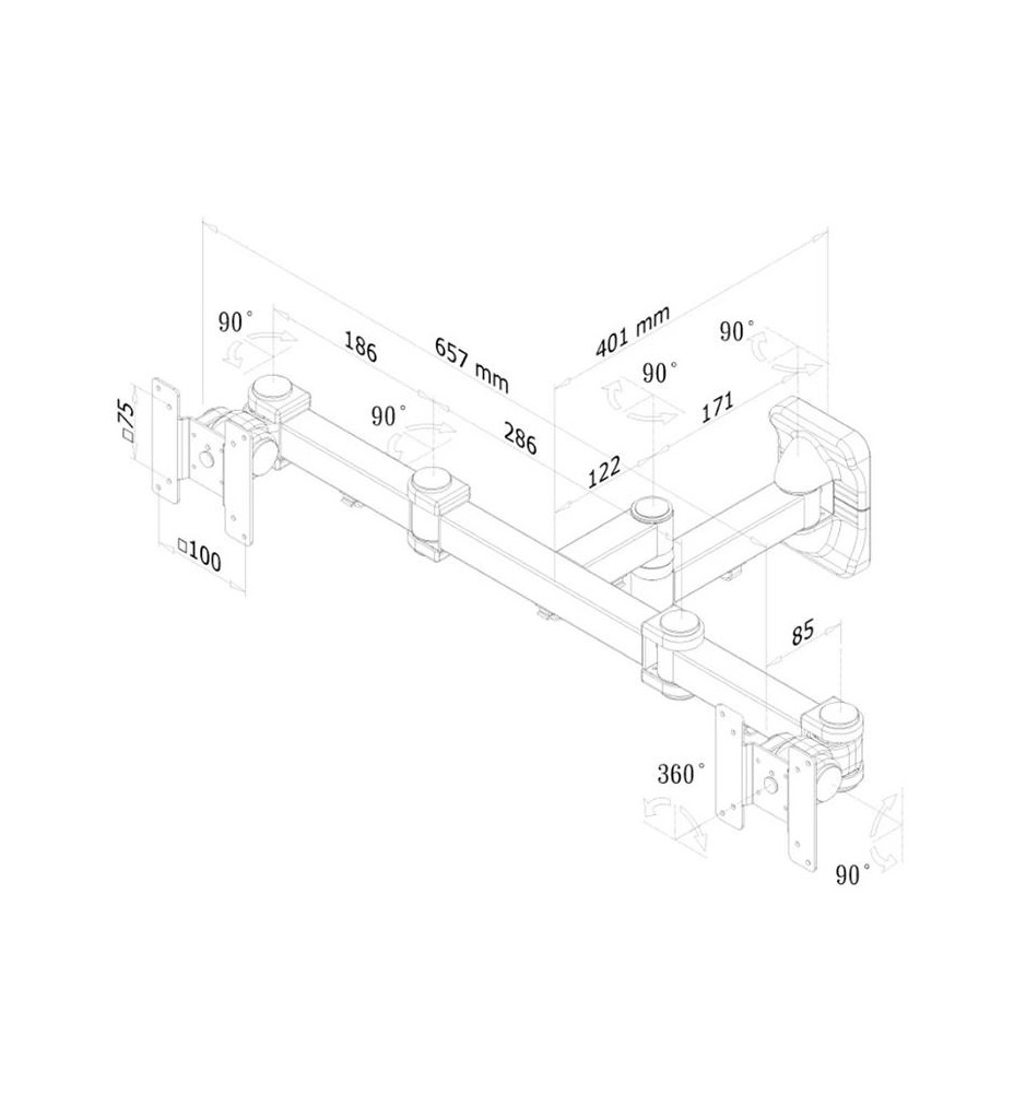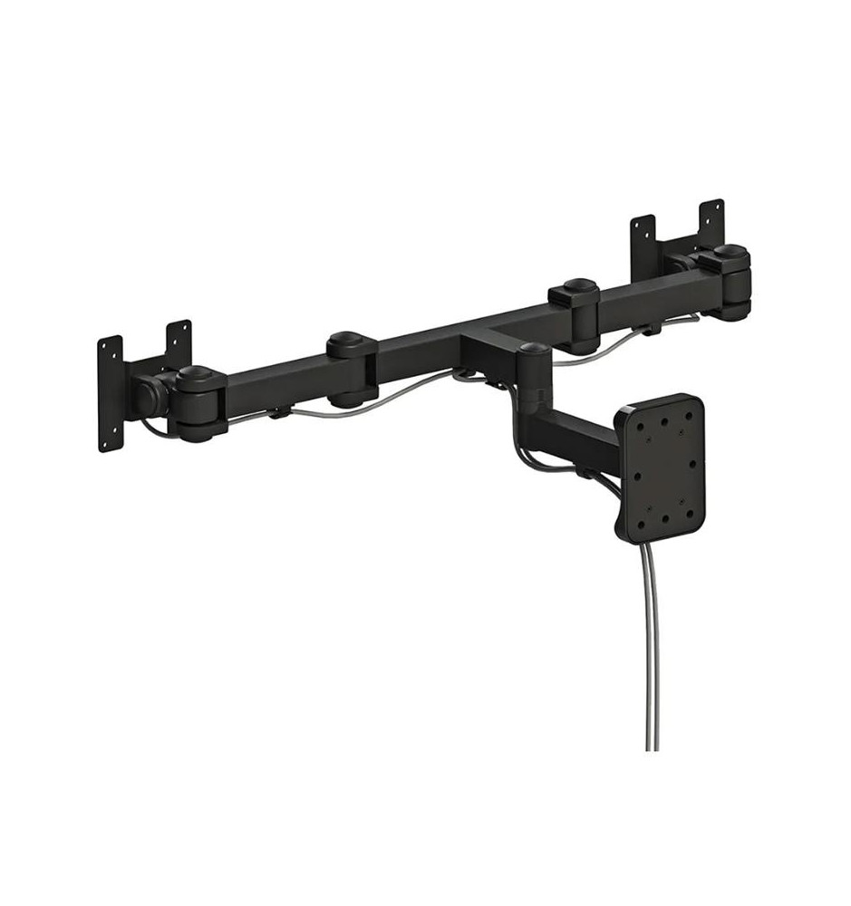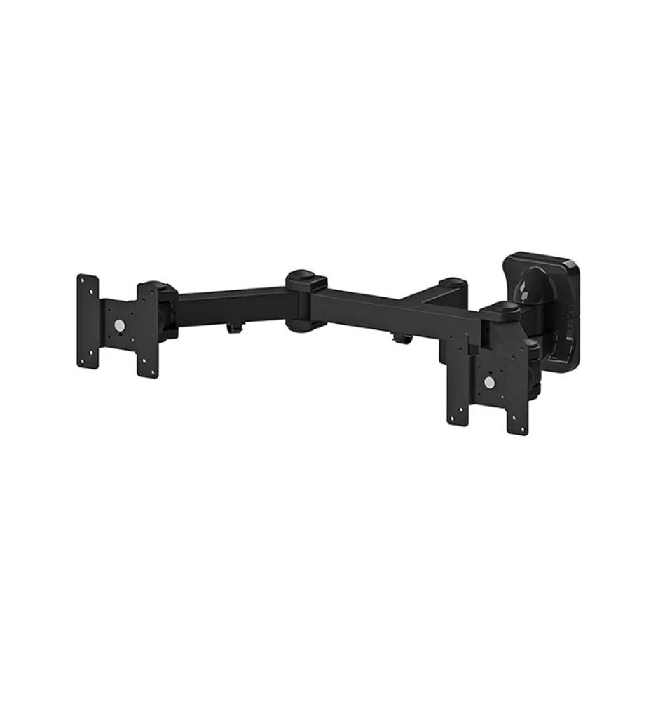 Uchwyt naścienny marki Neomounts dedykowany do użycia z dwoma monitorami równocześnie o przekątnej między 10", a 27". Maksymalna waga jednego ekranu może wynosić 6 kg. Uchwyt ten dzięki szerokiemu zakresowi regulacji w pionie i poziomie oraz możliwości rotacji ekranu o 360 stopni zapewnia najwyższą elastyczność oglądania. W połączeniu z możliwością regulacji odległości ramion od ściany będziesz w stanie manipulować nim niemal w każdym kierunku.