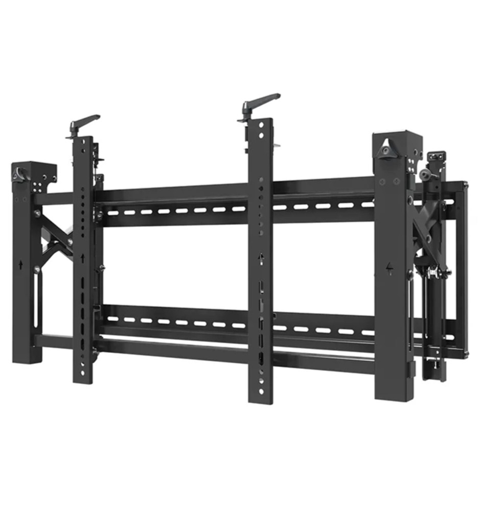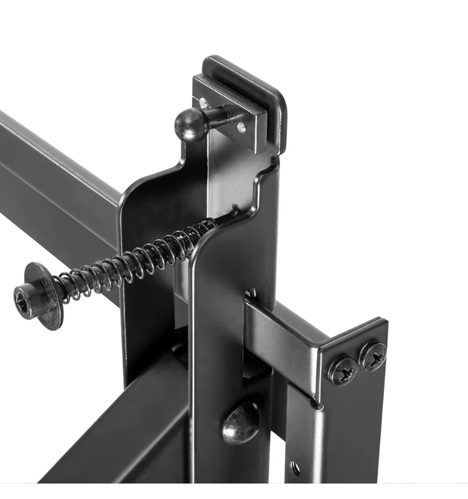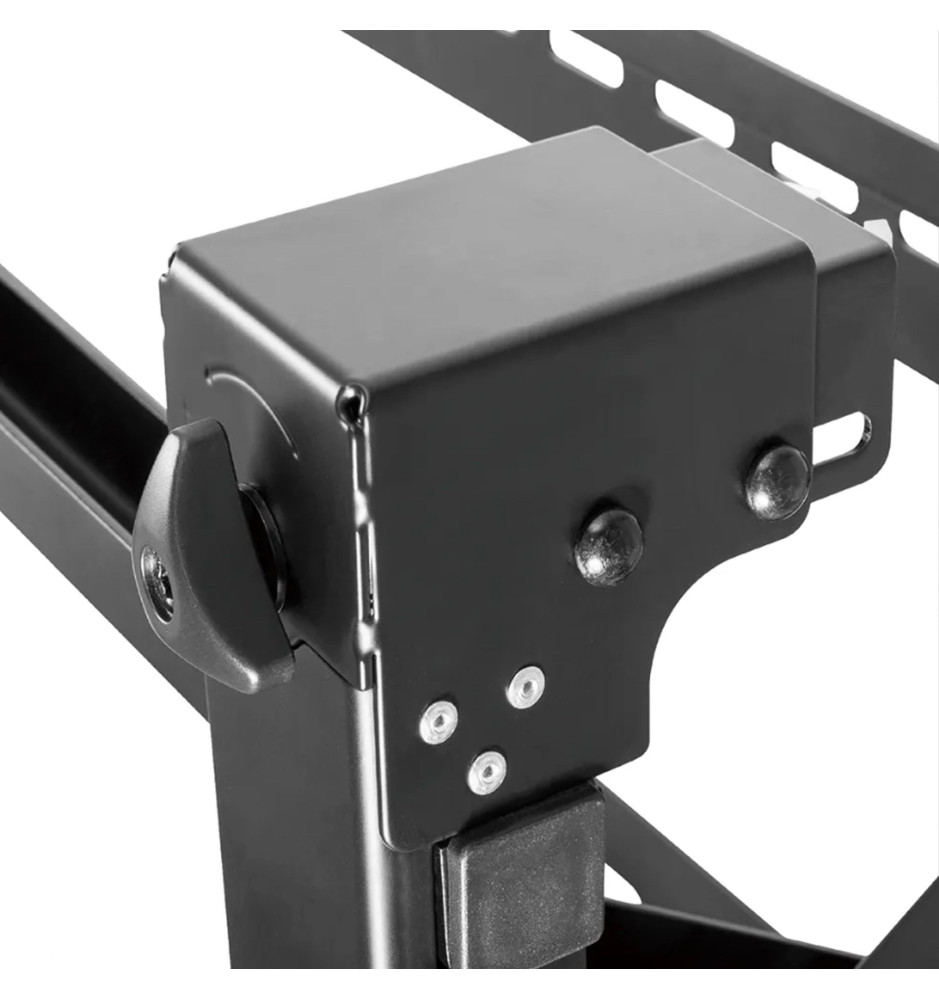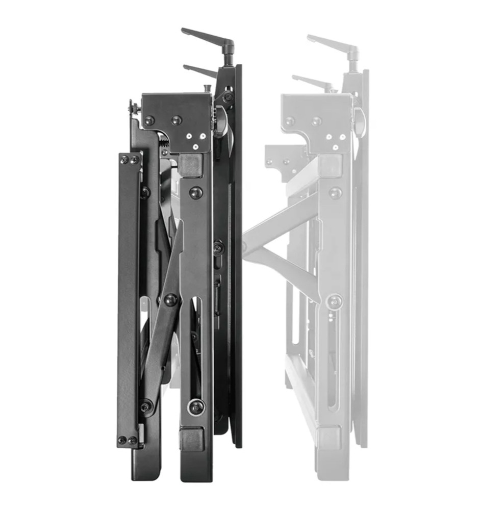Uchwyt został w całości wykonany ze stali, gwarantując bezpieczny montaż ekranu na ścianie. Oferuje możliwość dostosowania odległości od ściany w zakresie od 14,3cm do 30,6cm. Został wyposażony w funkcję Pop-out z przełącznikiem blokady, zapewniającą łatwy dostęp oraz możliwość pochylenia podpórki o 12 stopni, ułatwiającą zarządzanie kablami i konserwację.