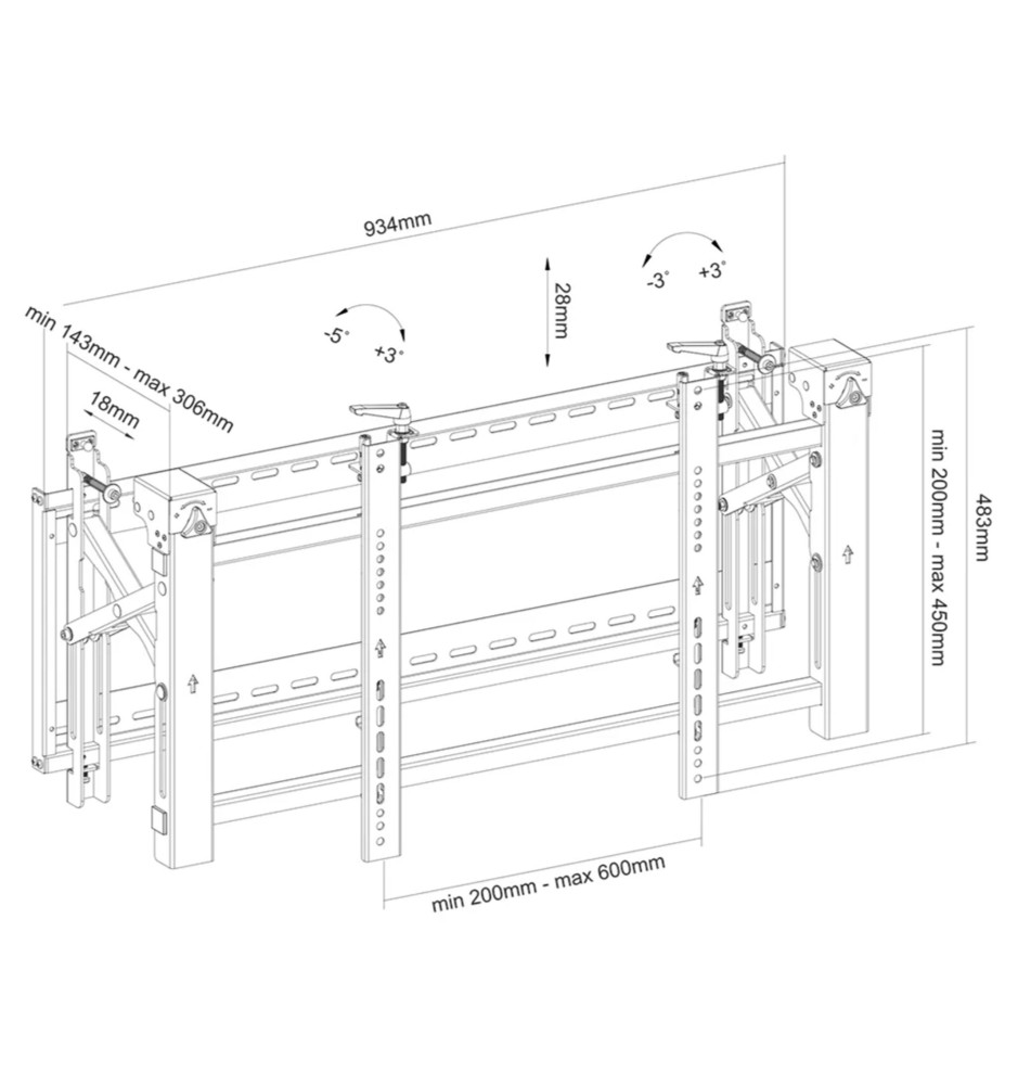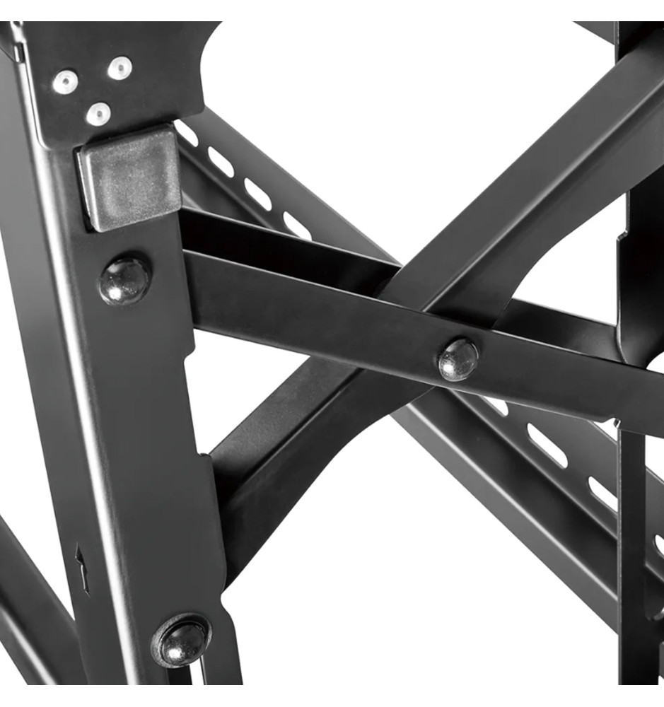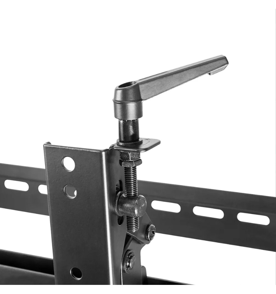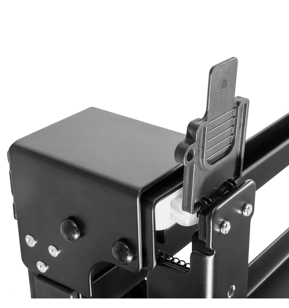 Uchwyt został w całości wykonany ze stali, gwarantując bezpieczny montaż ekranu na ścianie. Oferuje możliwość dostosowania odległości od ściany w zakresie od 14,3cm do 30,6cm. Został wyposażony w funkcję Pop-out z przełącznikiem blokady, zapewniającą łatwy dostęp oraz możliwość pochylenia podpórki o 12 stopni, ułatwiającą zarządzanie kablami i konserwację.