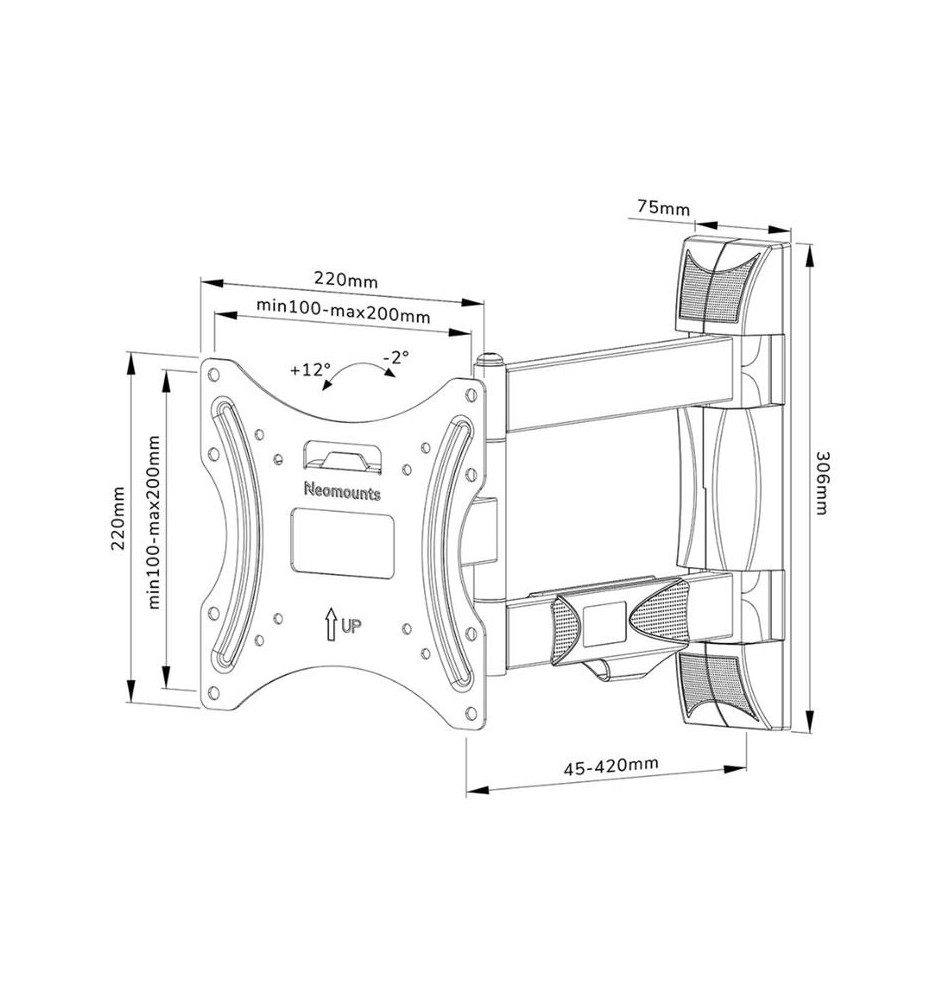 Uchwyt Neomounts by Newstar WL40-550BL12 jest zgodny ze standardami VESA 100x100, 100x200, 200x100 i 200x200 mm, dzięki czemu może być zastosowany do wielu płaskich ekranów, monitorów lub telewizorów o przekątnej do 55" i wadze do 35 kg. Przemyślany system zarządzania kablami zabezpiecza oraz prowadzi luźne przewody.