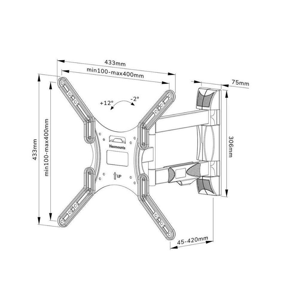 Uchwyt Neomounts by Newstar WL40-550BL14 jest zgodny ze standardami VESA w zakresach od 100x100 do 400x400 mm, dzięki czemu może być zastosowany do wielu płaskich ekranów, monitorów lub telewizorów o maksymalnej przekątnej do 55" i wadze do 35 kg. Przemyślany system zarządzania kablami pozwoli zadbać o estetyczne prowadzenie przewodów.