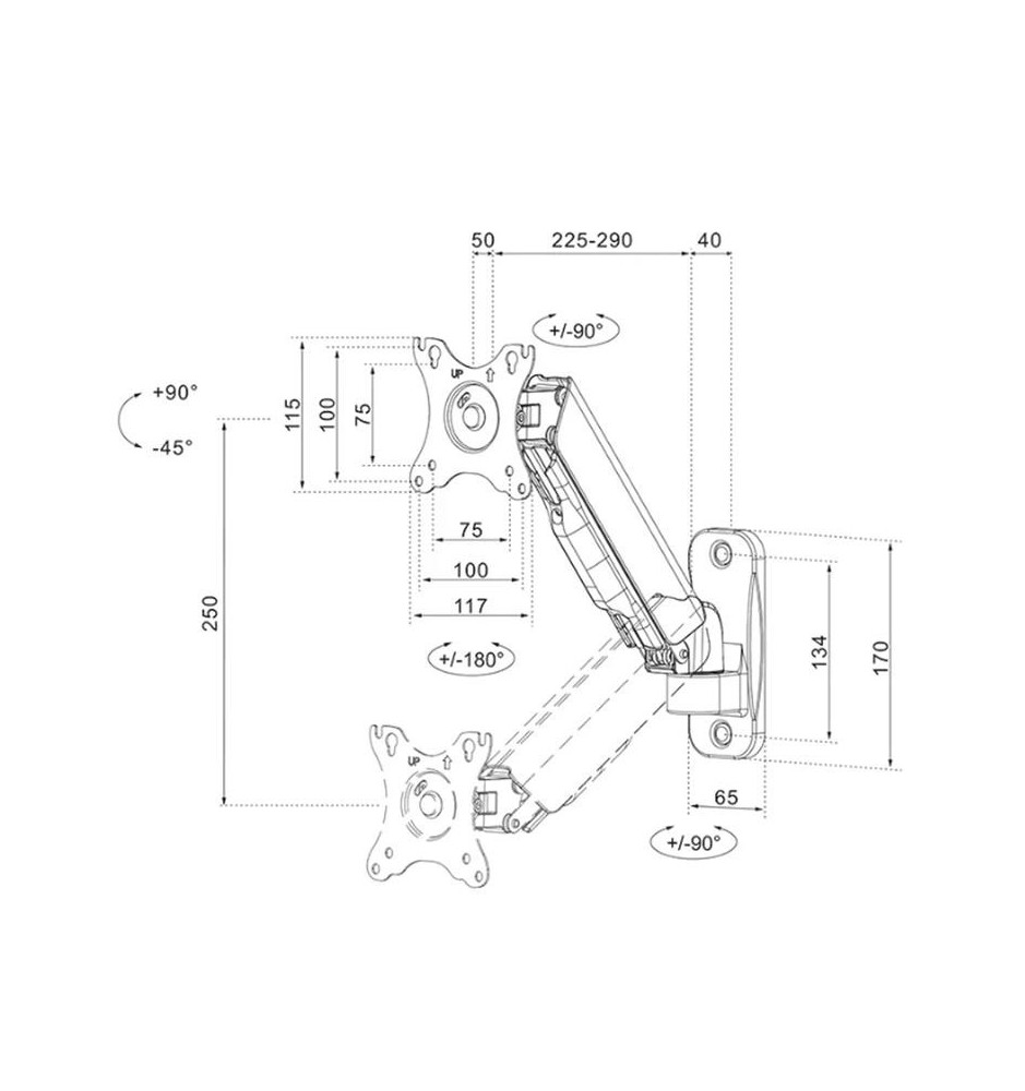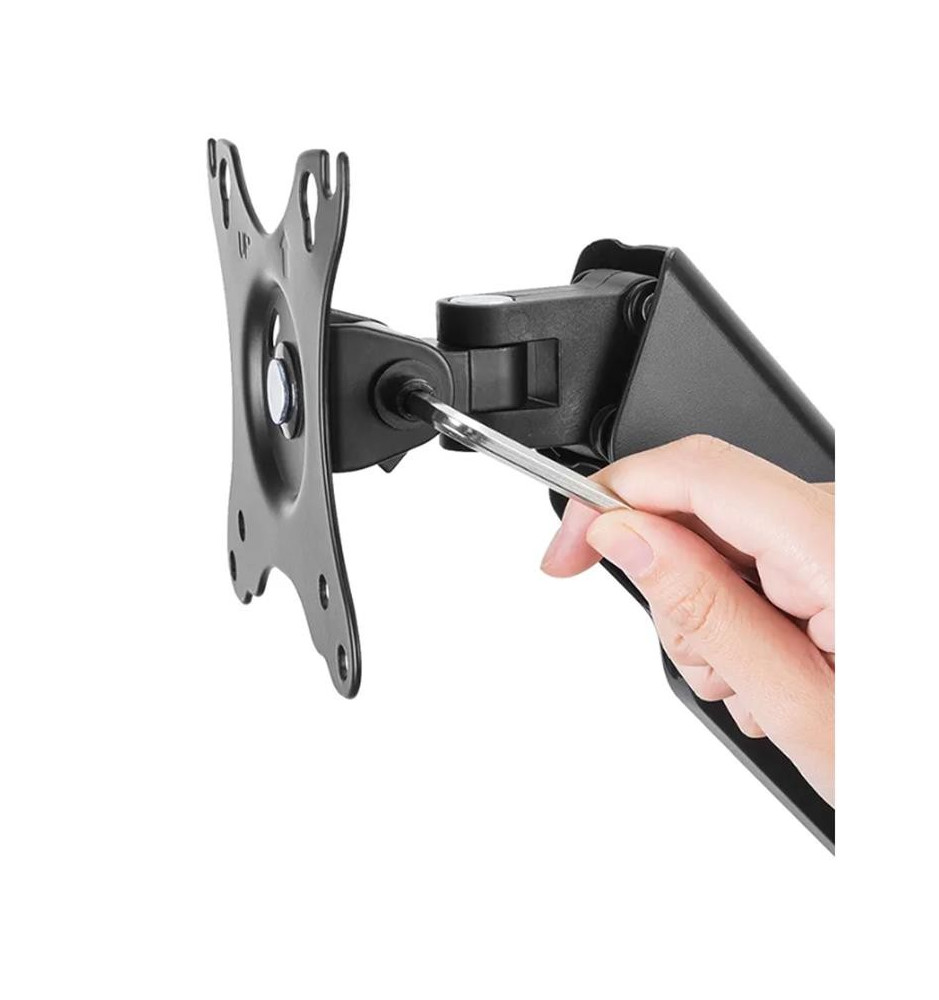 Uchwyt do ekranów o przekątnych od 17" do 32" pozwalający na szeroki zakres regulacji. Umożliwi to stworzenie optymalnego kąta widzenia ułatwiającego pracę z monitorem. Odległość uchwytu od ściany można regulować w zakresie od 9 do 38 cm.