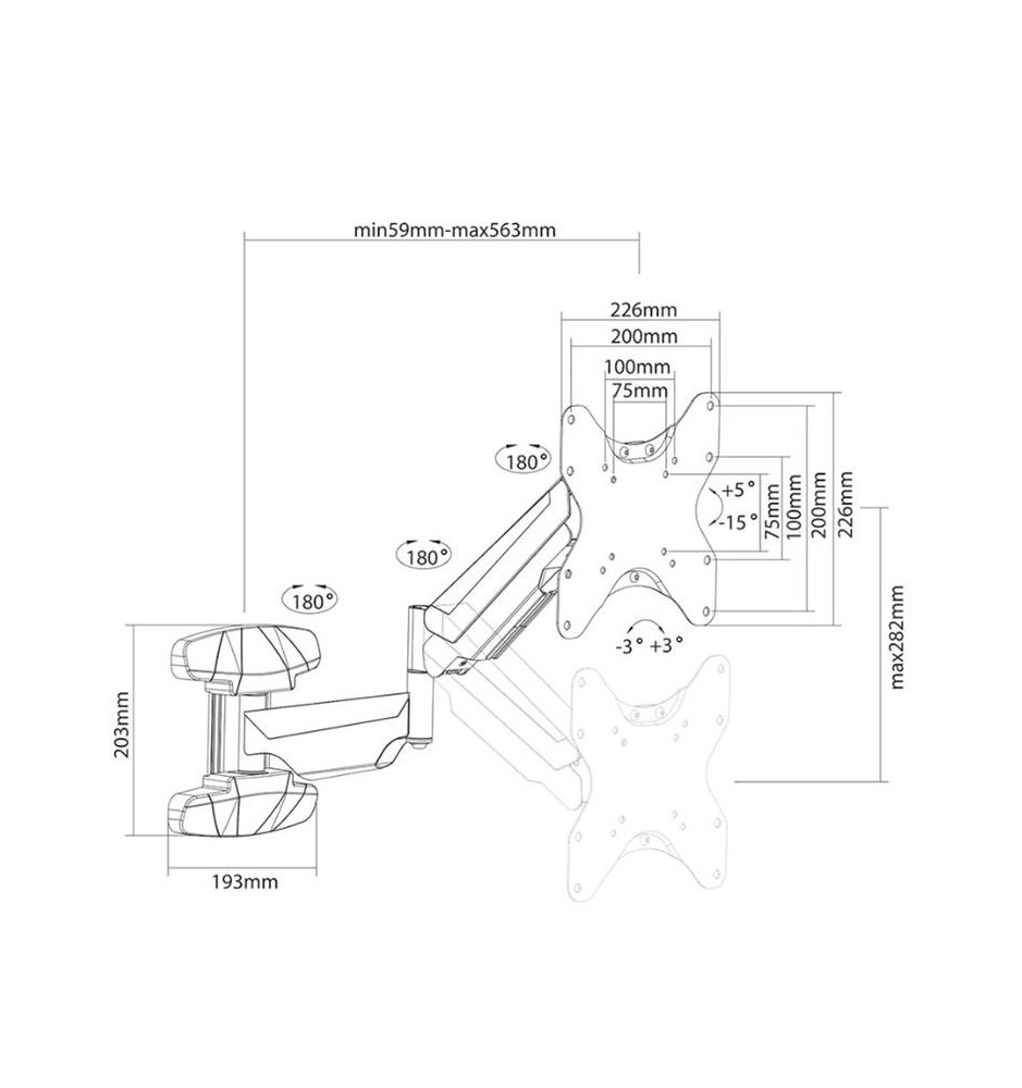 Uchwyt do ekranów o przekątnych od 23" do 42" pozwalający na szeroki zakres regulacji. Umożliwi to stworzenie optymalnego kąta widzenia ułatwiającego pracę z monitorem. Odległość uchwytu od ściany można regulować w zakresie od 5.9 do 56.3 cm.