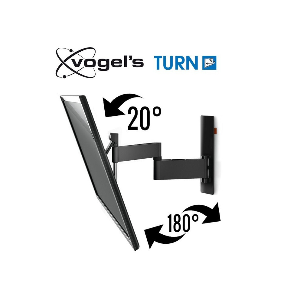 Vogels Turn W52081 daje możliwość dopasowania uchylenia ekranu w pionie o 20 stopni i obrócenia go o 180 stopni w poziomie. Specjalny system Autolock zapewnia stabilne i bezpieczne zablokowanie w wybranej pozycji.