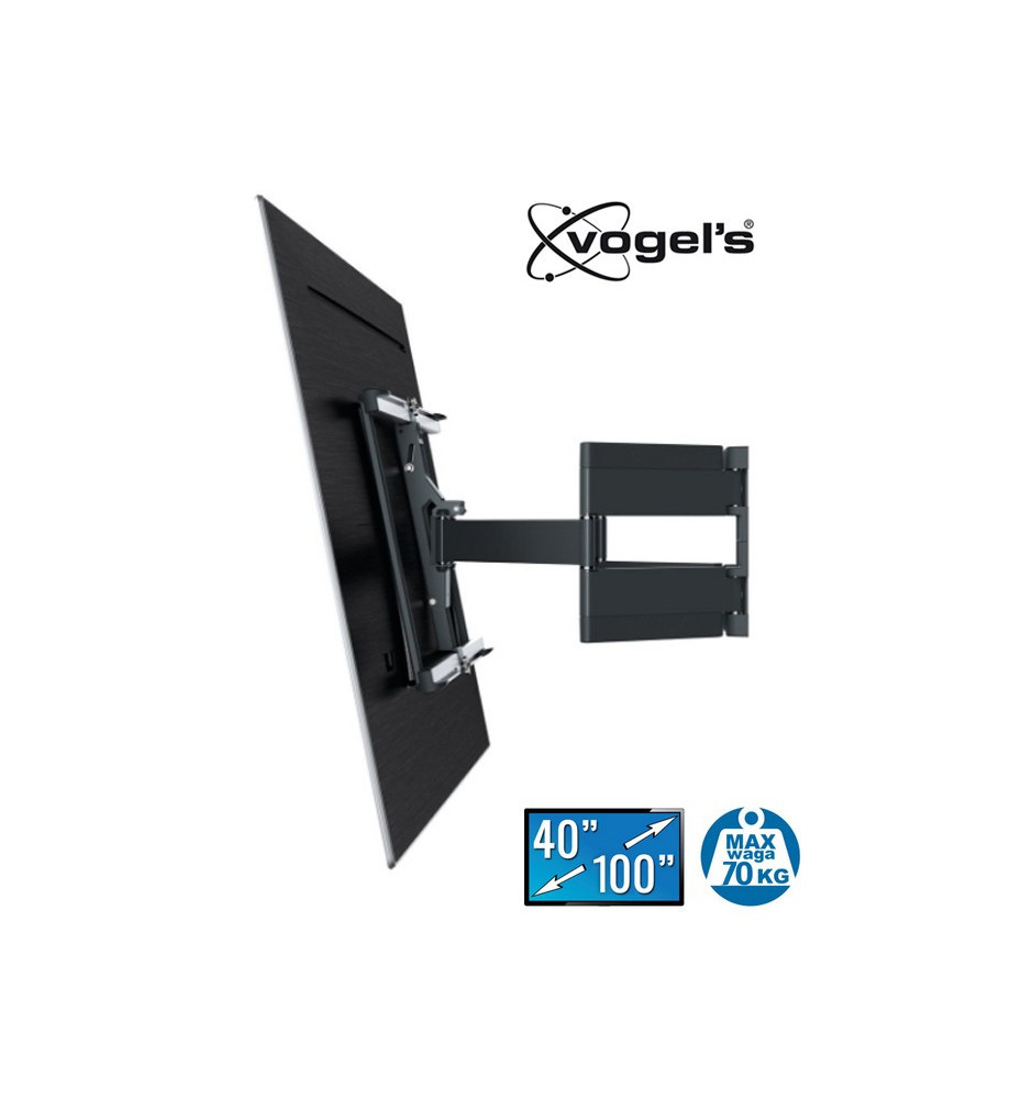 Uchwyt wyposażony jest w mechanizm pozwalający na pełną regulację w poziomie 120 stopni oraz pochylenie ekranu w pionie o 20 stopni, dzięki czemu będziesz mógł swobodnie ustawić ekran w zależności od miejsca oglądania. Wysoka jakość użytych materiałów gwarantuje stabilne i bezpieczne zamocowanie telewizora bez jakichkolwiek obaw o uszkodzenie, a opatentowane rozwiązania firmy Vogels, sprawiają, że uchwyt będzie służył niezawodnie przez wiele lat.