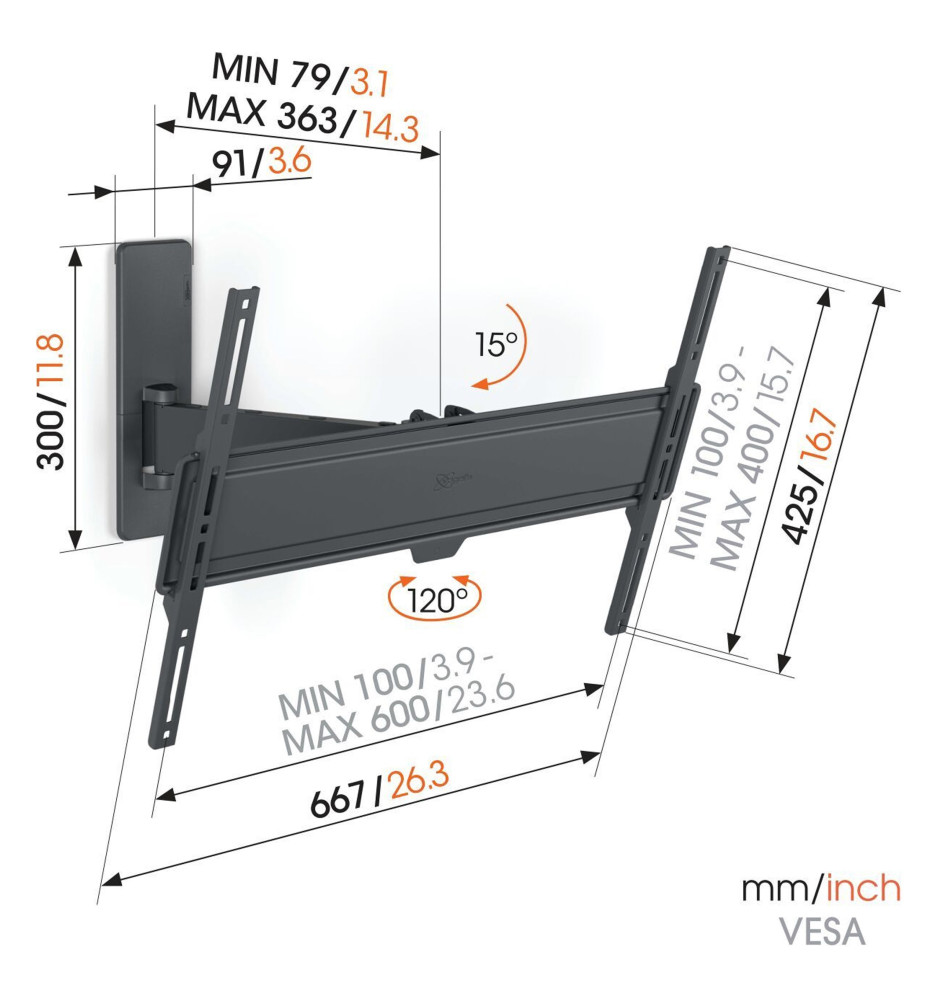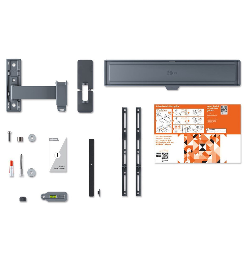 Wysokiej jakości uchwyt ścienny z serii Quick z ramieniem o szerokim zakresie regulacji, dedykowany do telewizorów o przekątnej ekranu od 40" do 77" oraz wadze do 35kg. Pozwala na płynne obrócenie ekranu w zakresie do 120° oraz jego pochylenie do 15°.