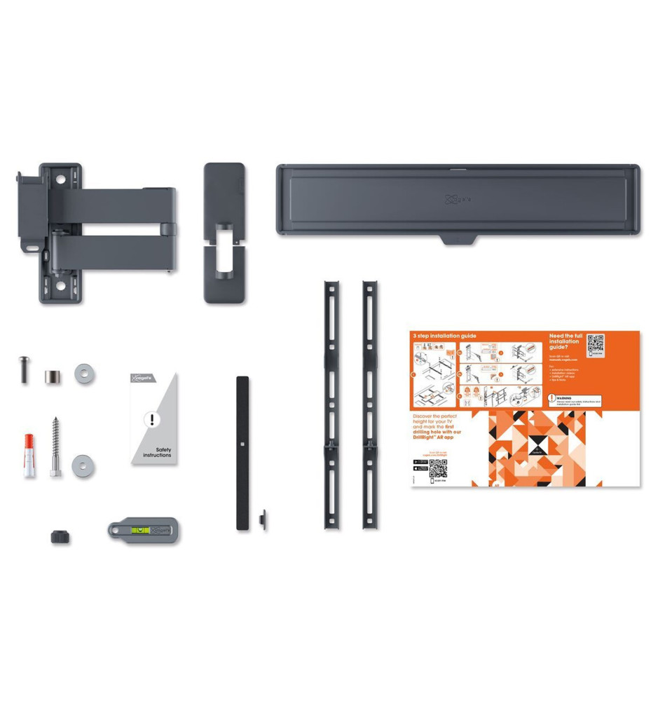 Uchwyty ścienne z serii Quick zaprojektowano w taki sposób, aby umożliwić łatwy i szybki montaż telewizora na ścianie w zaledwie 30 minut, dzięki unikalnemu systemowi EasyFIX™ z możliwością precyzyjnego ustawienia zainstalowanego ekranu. Darmowa aplikacja DrillRight™ na urządzenia mobilne oraz zintegrowana poziomica dodatkowo ułatwią instalację uchwytu na ścianie.