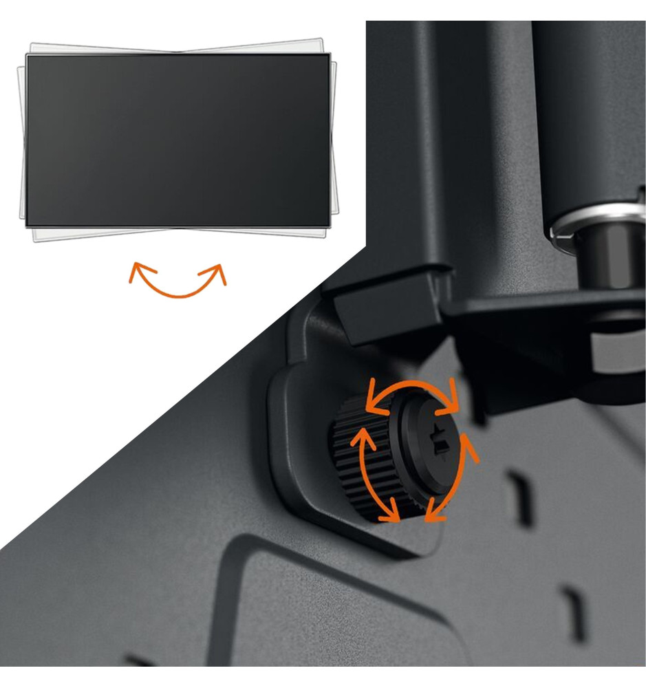 Regulowany uchwyt TVM 1643 z serii Quick gwarantuje bezpieczny montaż telewizora na ścianie z możliwością jego obrotu do 180° i pochylenia do 15°. Uchwyt jest kompatybilny ze standardami VESA, posiada certyfikat TÜV, zintegrowaną poziomicę, oferuje łatwy dostęp do przewodów z paskiem mocującym oraz został przetestowany pod kątem trzykrotności maksymalnego udźwigu.