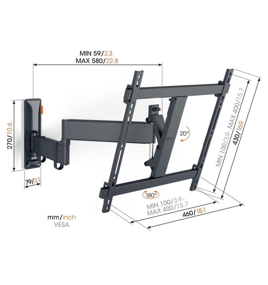 Vogels TVM 3443 - Regulowany uchwyt ścienny do telewizorów 32" - 65"