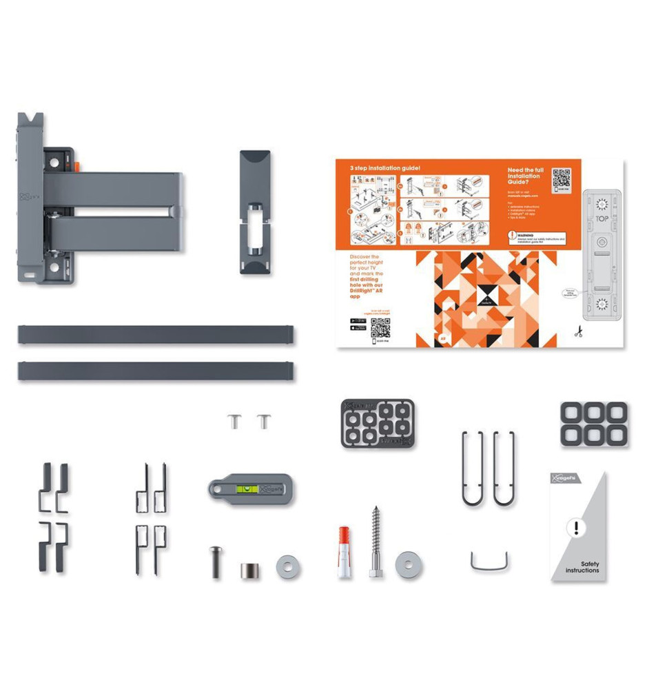 Uchwyty do telewizorów z serii Comfort są łatwe w montażu i sprzedawane z zestawem niezbędnych akcesoriów instalacyjnych, obejmującym: poziomicę, ochronne podkładki pod telewizor, szablon do nawiercenia otworów, czytelną instrukcję instalacji oraz kołki i wkręty Fischer® DuoPower. Bezpłatna aplikacja DrillRight na urządzenia mobilne umożliwi łatwe wyznaczenie miejsca montażu uchwytu.