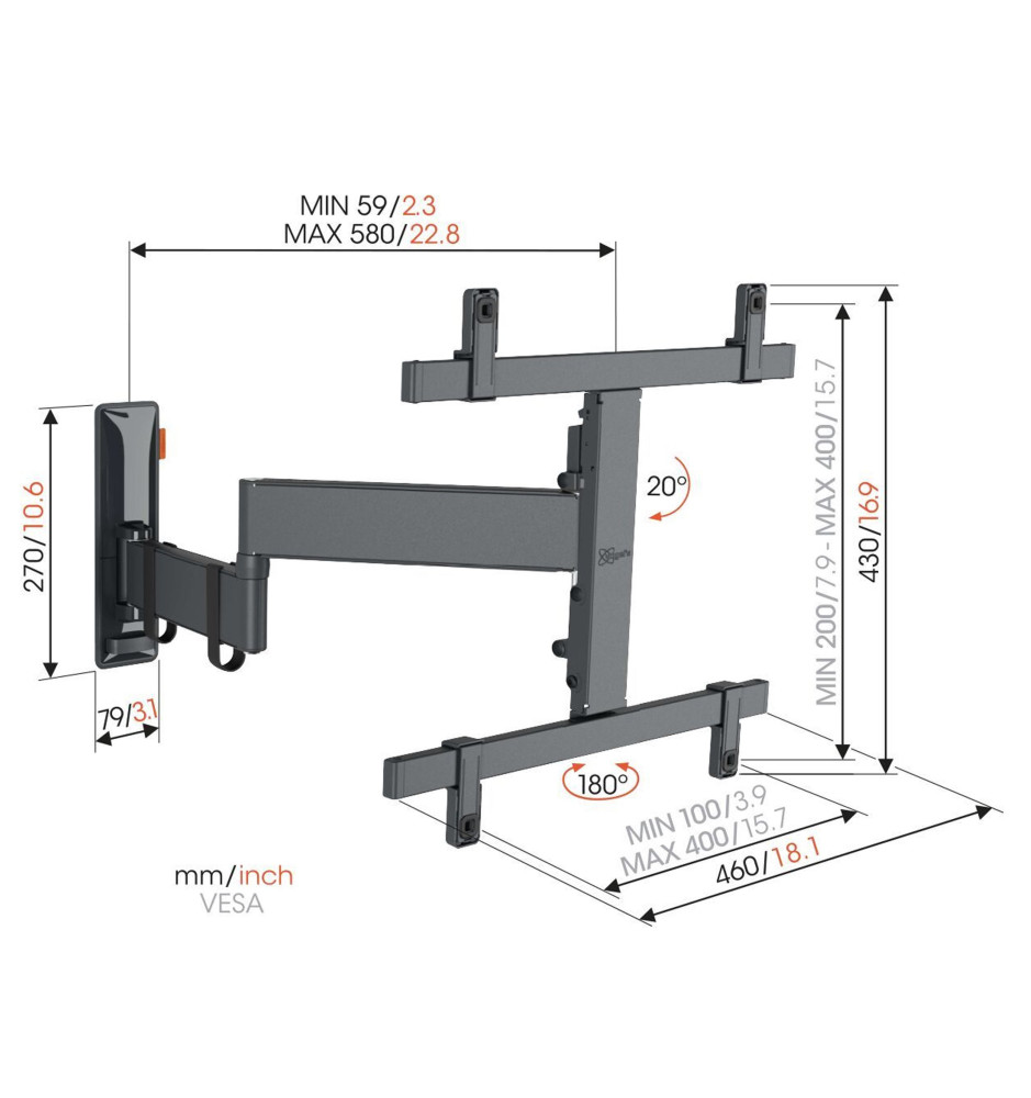 Vogels TVM 3463 - Obrotowy uchwyt ścienny do telewizorów OLED 32" - 65"
