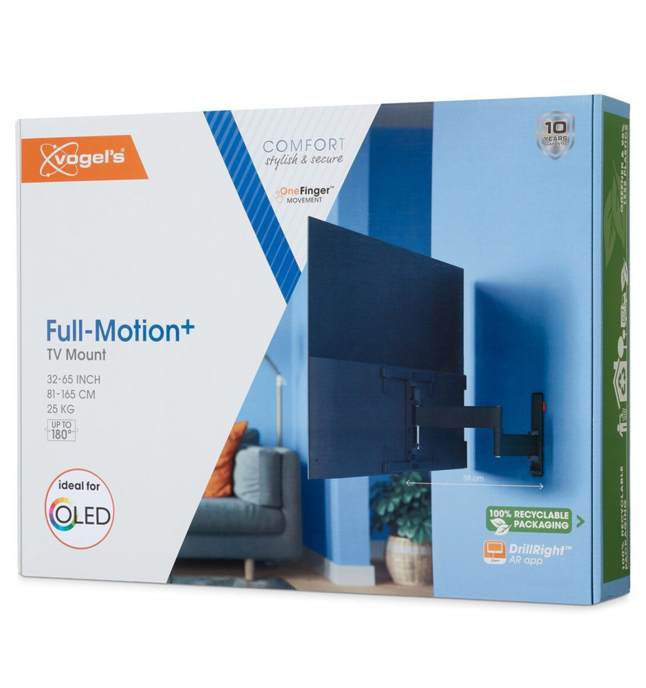 Dedykowany do telewizorów OLED o przekątnej ekranu od 32" do 65" i wadze do 25kg, stylowy uchwyt ścienny z serii Comfort z regulowanym ramieniem, umożliwiającym precyzyjne dostosowanie kąta pochylenia do 20° oraz płynnego obrotu w zakresie 180°.