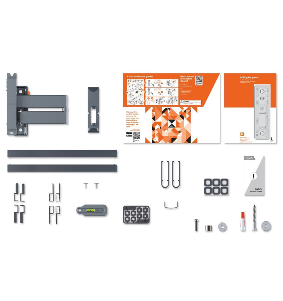 Uchwyty do telewizorów z serii Comfort są łatwe w montażu i sprzedawane z zestawem niezbędnych akcesoriów instalacyjnych, obejmującym: poziomicę, ochronne podkładki pod telewizor, szablon do nawiercenia otworów, czytelną instrukcję instalacji oraz kołki i wkręty Fischer® DuoPower. Bezpłatna aplikacja DrillRight na urządzenia mobilne umożliwi łatwe wyznaczenie miejsca montażu uchwytu.