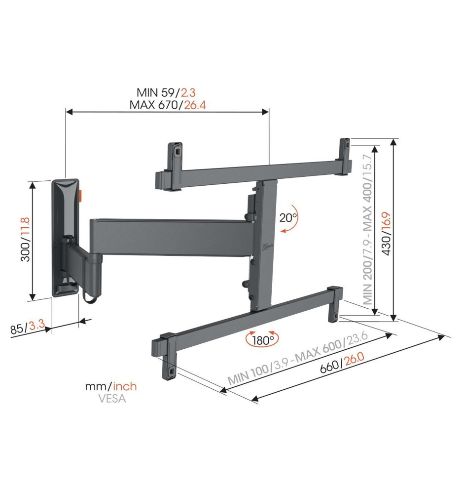 Vogels TVM 3663 - Obrotowy uchwyt ścienny do telewizorów OLED 40" - 77"