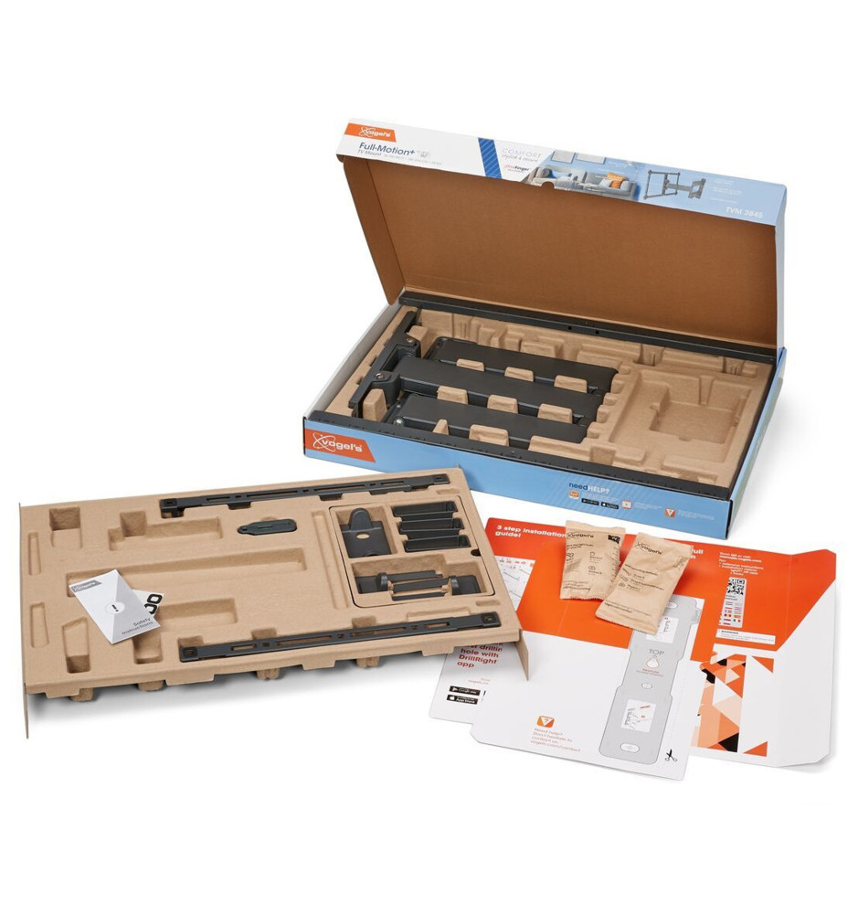 Uchwyty do telewizorów z serii Comfort są łatwe w montażu i sprzedawane z zestawem niezbędnych akcesoriów instalacyjnych, obejmującym: zintegrowaną poziomicę, ochronne podkładki pod telewizor, szablon do nawiercenia otworów, klucz imbusowy, czytelną instrukcję instalacji oraz kołki i wkręty Fischer® DuoPower. Bezpłatna aplikacja DrillRight na urządzenia mobilne umożliwi łatwe wyznaczenie miejsca montażu uchwytu.