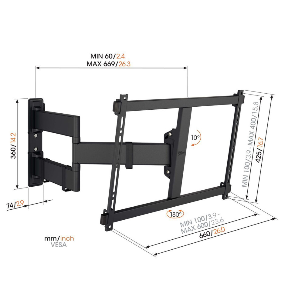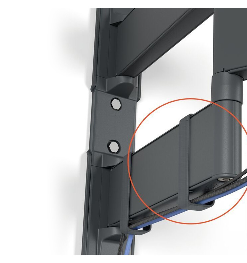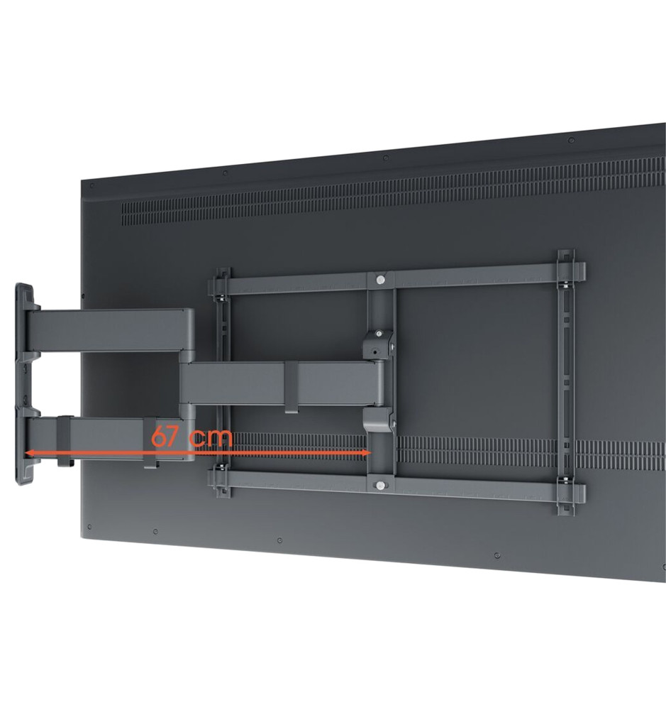 Najmocniejszy uchwyt ścienny typu Full-Motion+ z serii Comfort o długim ramieniu, oferującym szeroki zakres obrotu i możliwość pochylenia ekranu, dedykowany do dużych telewizorów o przekątnej ekranu od 55" do 100" i wadze do 55 kg.