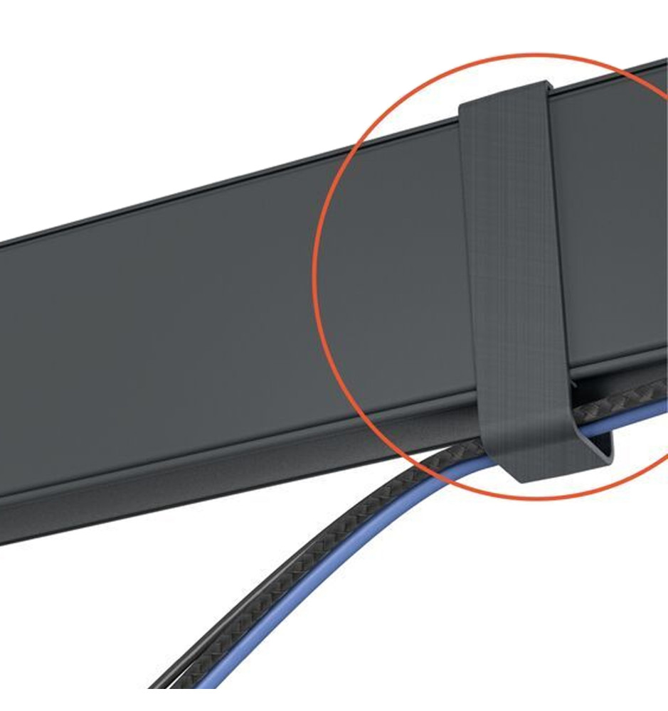 TVM 3843 jest regulowanym uchwytem One-Finger™ Movement, który dzięki specjalnym łożyskom, oferuje możliwość pochylenia ekranu w zakresie od -10° do +10° oraz bezwysiłkowego, płynnego obrotu do 180°. Dołączony klips pozwala na wygodne poprowadzenie i przymocowanie przewodów do ramienia.