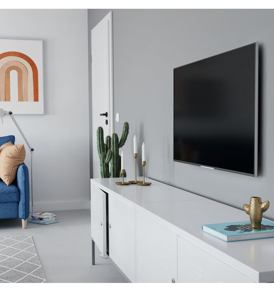 Uchwyt TVM 1203 z serii Quick gwarantuje bezpieczny montaż telewizora na ścianie z możliwością zablokowania ekranu, dzięki funkcji SoftLock™. Uchwyt jest kompatybilny ze standardami VESA, posiada certyfikat TÜV, zintegrowaną poziomicę, oferuje łatwy dostęp do przewodów oraz został przetestowany pod kątem trzykrotności maksymalnego udźwigu.