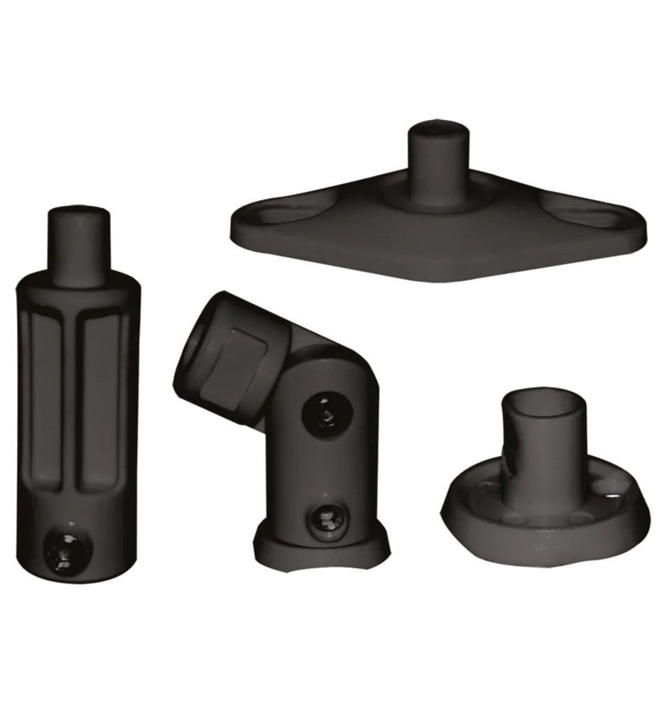 Zestaw dwóch lekkich uchwytów do niedużych głośników o wadze do 3.5 kg, przystosowanych do montażu ściennego lub sufitowego. W zestawie znajdują się niezbędne akcesoria instalacyjne.