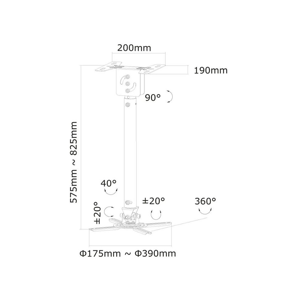 Uniwersalny uchwyt do projektorów. Zaleca się go stosować w połączeniu z modelami ważącymi do 15 kg.