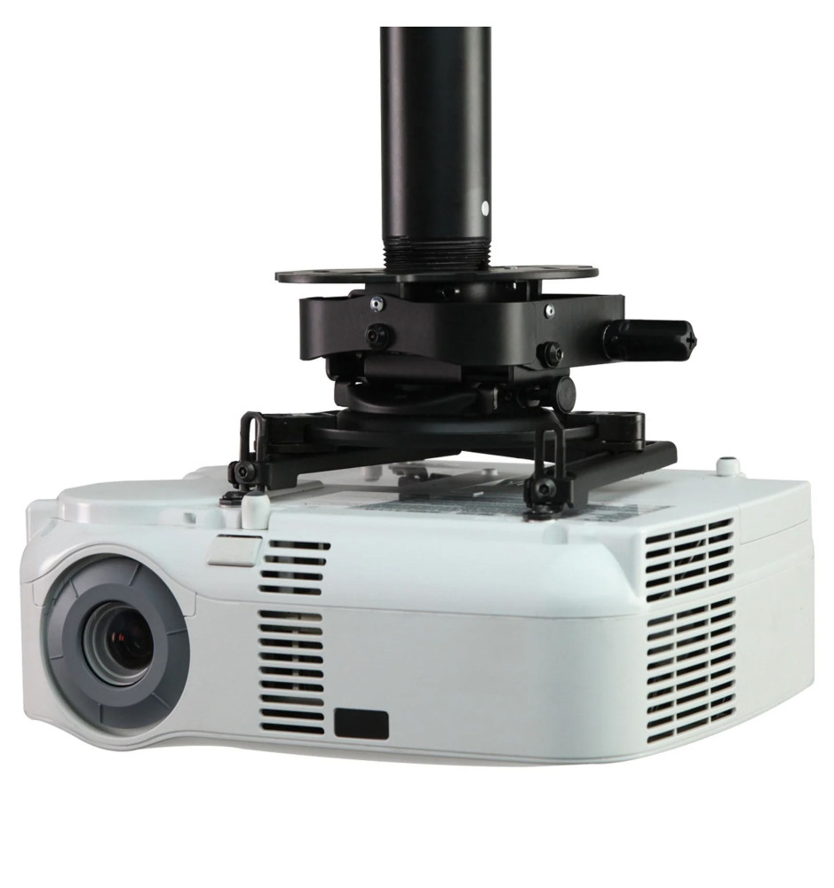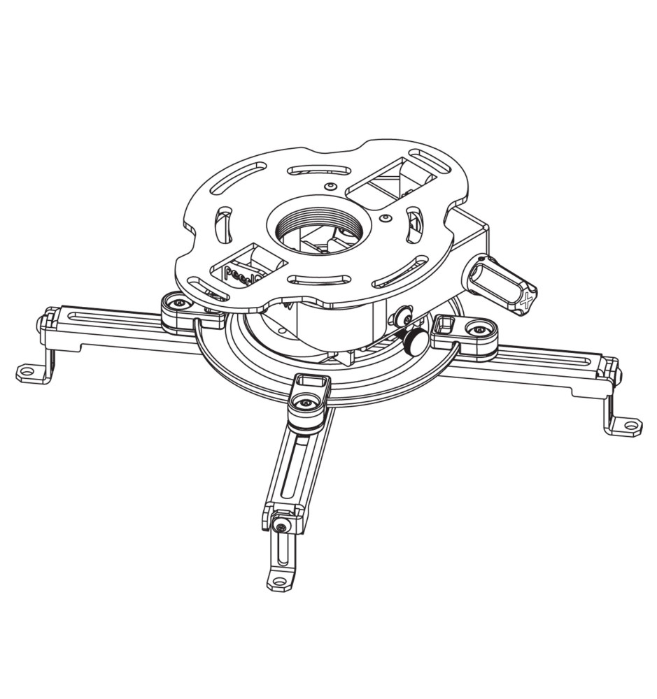 Profesjonalny niskoprofilowy uchwyt sufitowy do projektorów o maksymalnej wadze 22 kg, posiadający precyzyjną regulację pozycji projektora dla optymalnego ustawienia obrazu. Opatentowany mechanizm regulacji pochylenia oraz przechylenia projektora posiada dwa pokrętła regulacyjne z możliwością ręcznego sterowania lub za pomocą śrubokręta krzyżakowego.