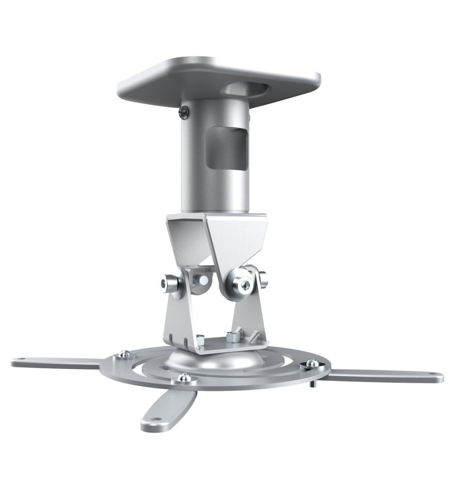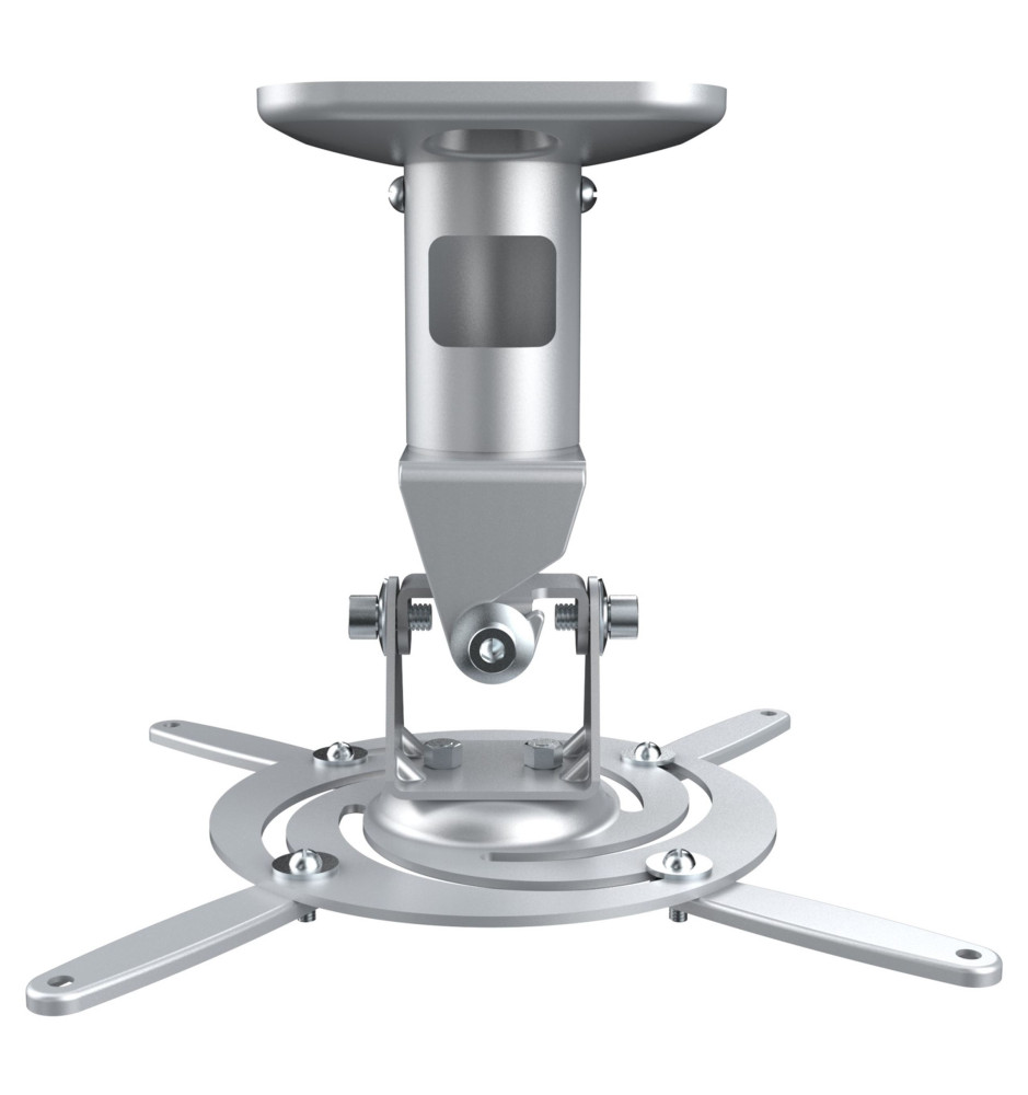 Ponadczasowy design uchwytu, regulowany rozstaw ramion oraz jego łatwy montaż pozwalają na idealne dopasowanie do wystroju wnętrza i posiadanego projektora. Pomimo stałej wysokości 215mm, oferuje on możliwość obrotu o 360 stopni oraz pochylenia w dwóch płaszczyznach o 25 stopni, gwarantując optymalne ustawienie wyświetlanego obrazu. Płynne i ciche działanie zapewnia zastosowanie przegubu Kardana.