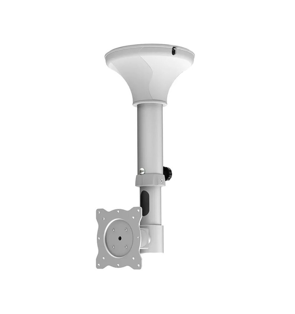 Wysokiej jakości stalowy uchwyt sufitowy do monitora lub telewizora o przekątnej ekranu od 10" do 30". Konstrukcja z regulacją wysokości i pochylenia umożliwia optymalne ustawienie ekranu oraz montaż na skośnym suficie. System zarządzania przewodami pozwala na ukrycie kabli i poprowadzenie ich od sufitu do telewizora. Do produktu dołączone są wszystkie niezbędne akcesoria instalacyjne.