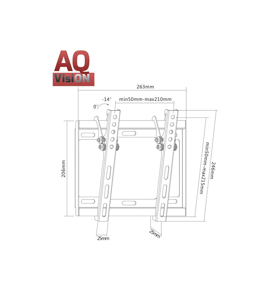 Wysokiej jakości uchwyt ścienny do telewizorów z możliwością pochylenia AQ VisiON BR22FX , o solidnej, stalowej konstrukcji malowanej proszkowo, zapewniający stabilność przy zachowaniu niewielkiej wagi oraz prześwitu.