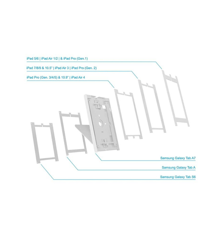 Przemyślana konstrukcja uchwytu DS15-630WH1 sprawia, że jest kompatybilny z większością tabletów o przekątnych w przedziale 9,7 - 11". Ten zakres obejmuje różne popularne modele takie, jak iPad Pro gen 1-5, iPad Air 1-5, iPad 5-9, Samsung Galaxy Tab A, Tab A7 i Tab S6 Lite.