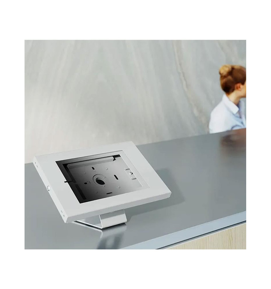 Uchwyt marki Neomounts by Newstar dedykowany do tabletów. Jego konstrukcja pozwala zamontować go na ścianie lub biurku. Dzięki dołączonej blokadzie antykradzieżowej idealnie nada się do montowania w przestrzeniach publicznych np. w biurach czy w hotelach.