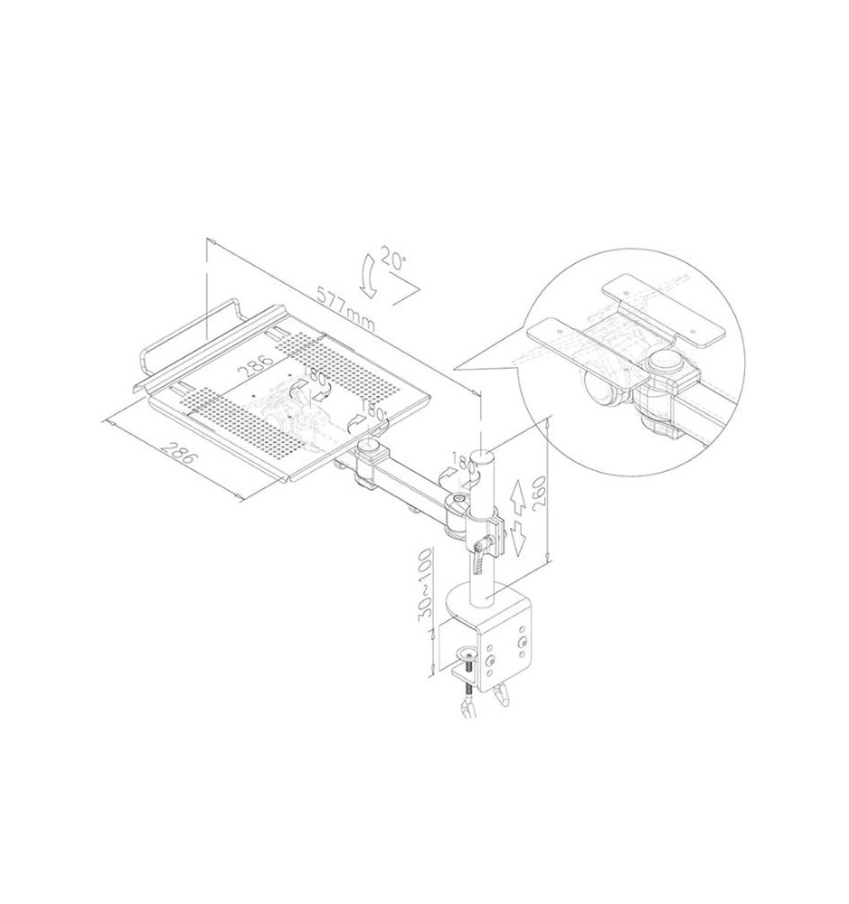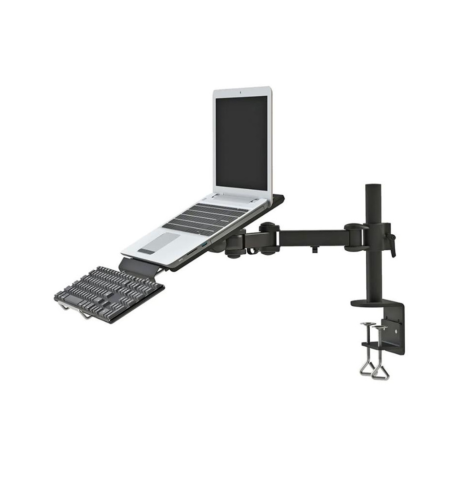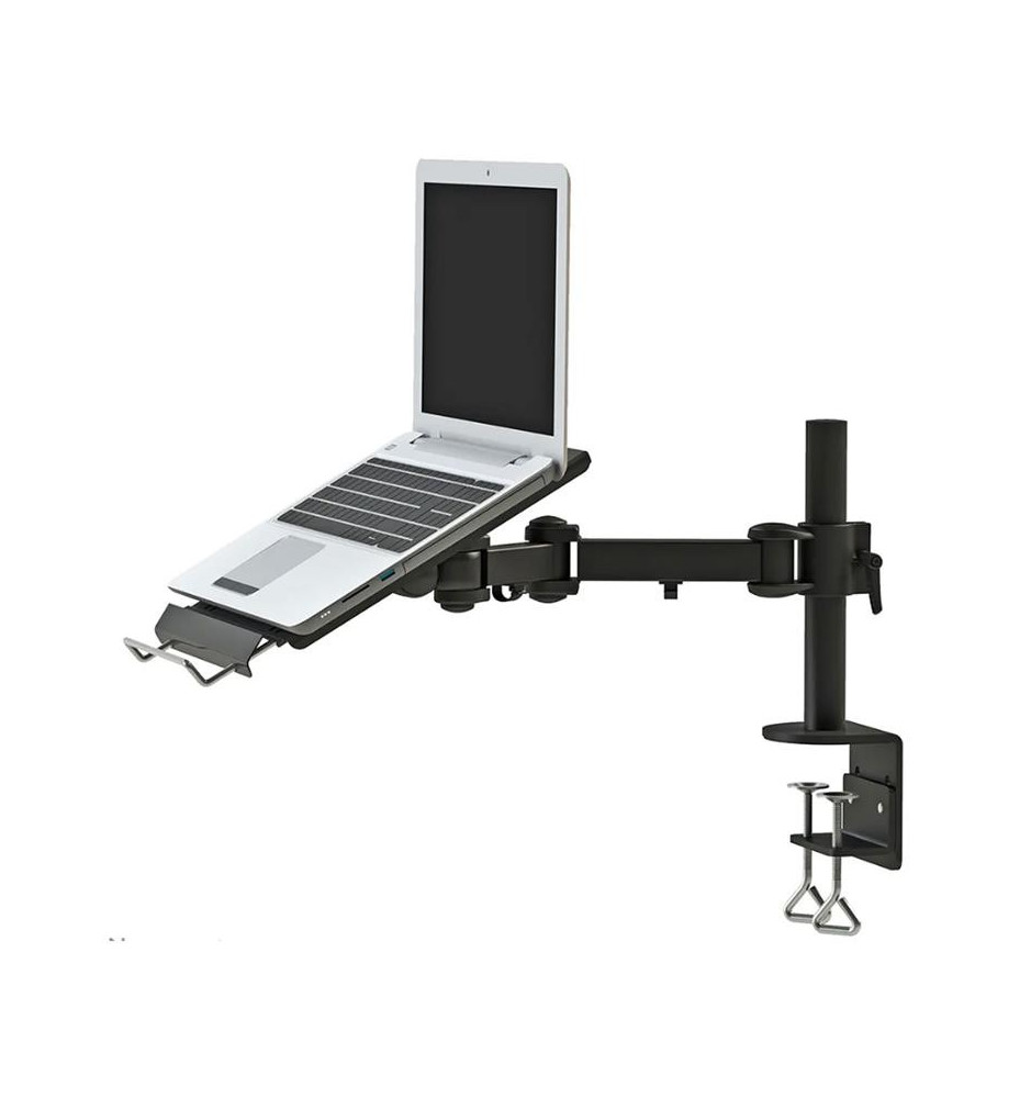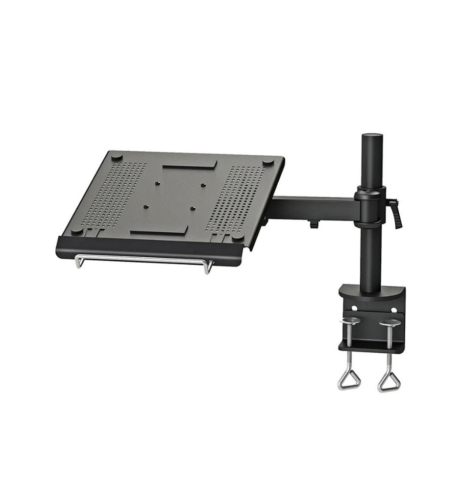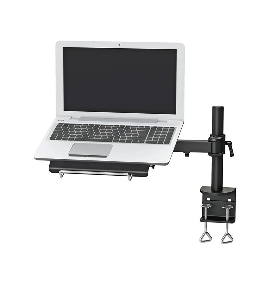 Stalowy uchwyt umożliwiający wygodną pracę z laptopem przy biurku. Zalecana rozdzielczość ekranu laptopa, z której wygodnie można korzystać w połączeniu uchwytem wynosi między 10", a 22".