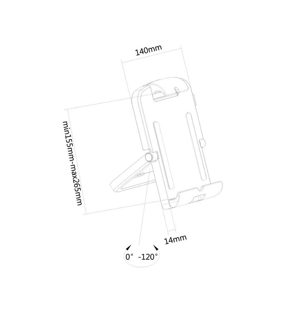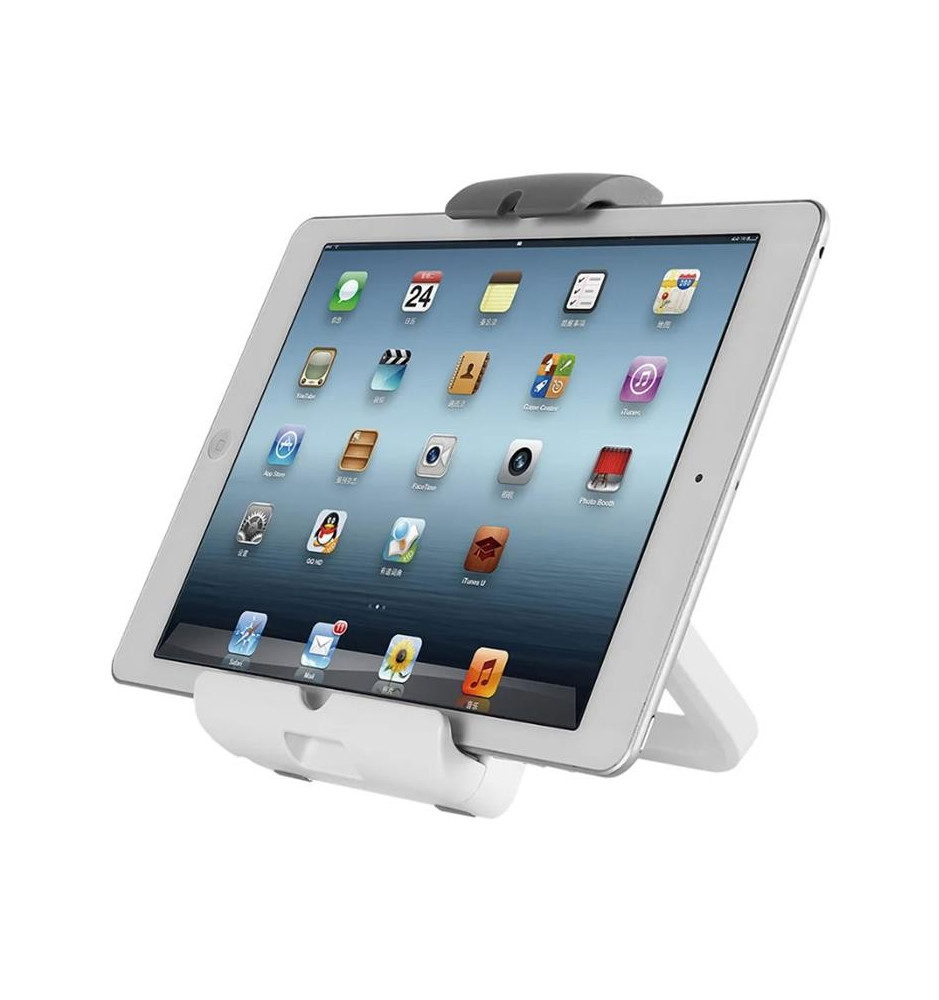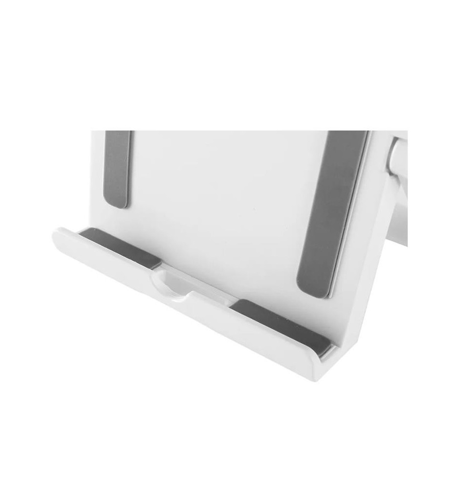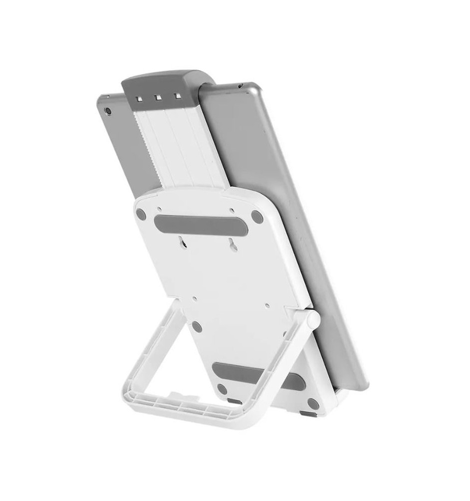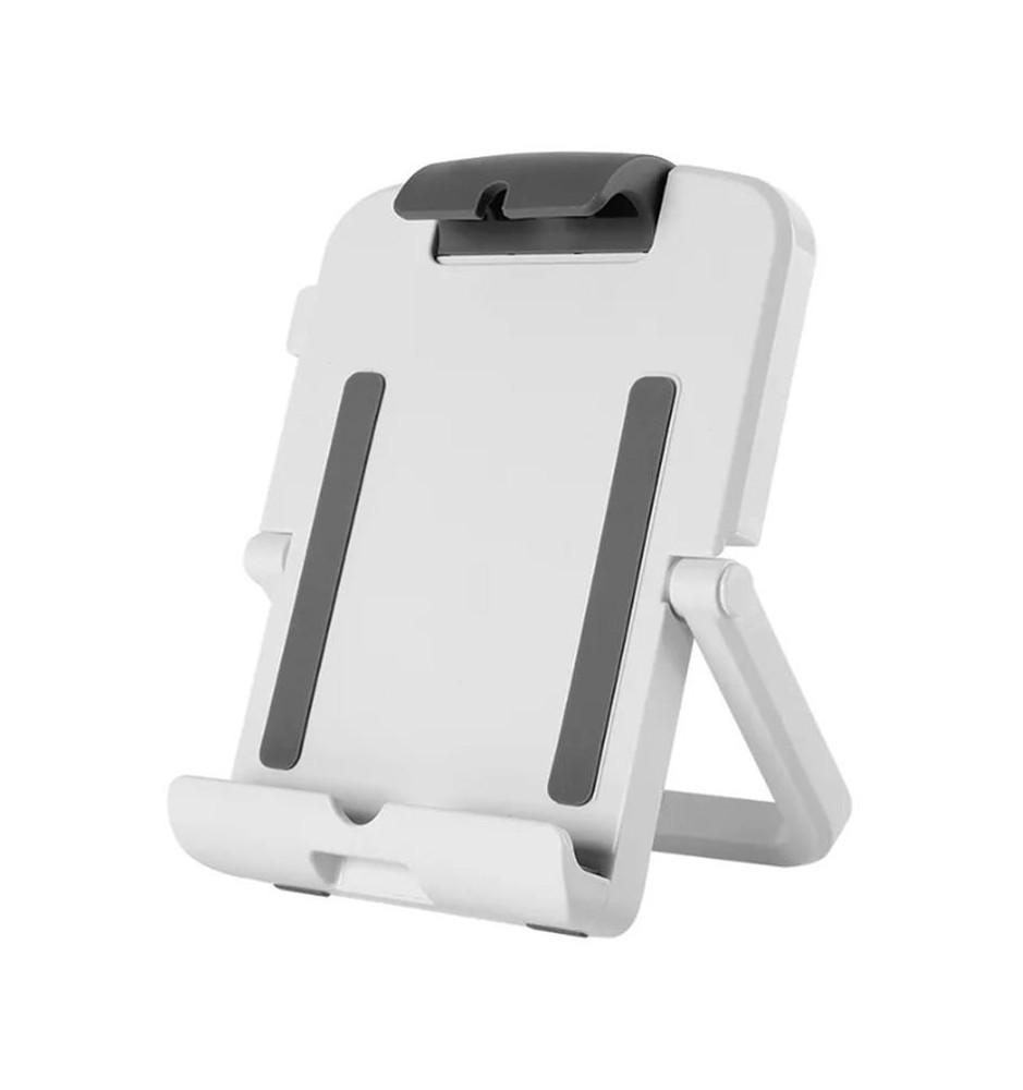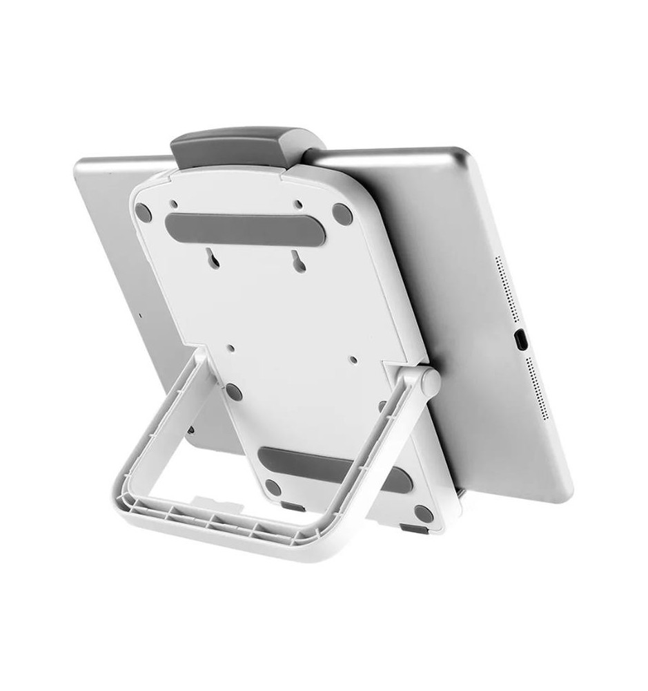 Uniwersalny uchwyt do tabletu, który sprawdzi się w użyciu z większością modeli tabletów o przekątnej ekranu między 7, a 10.1 cali. Taki nieduży stojak jest świetnym rozwiązaniem, jeśli potrzebuje się funkcjonalnego akcesorium nie zajmującego dużo miejsca na biurku.