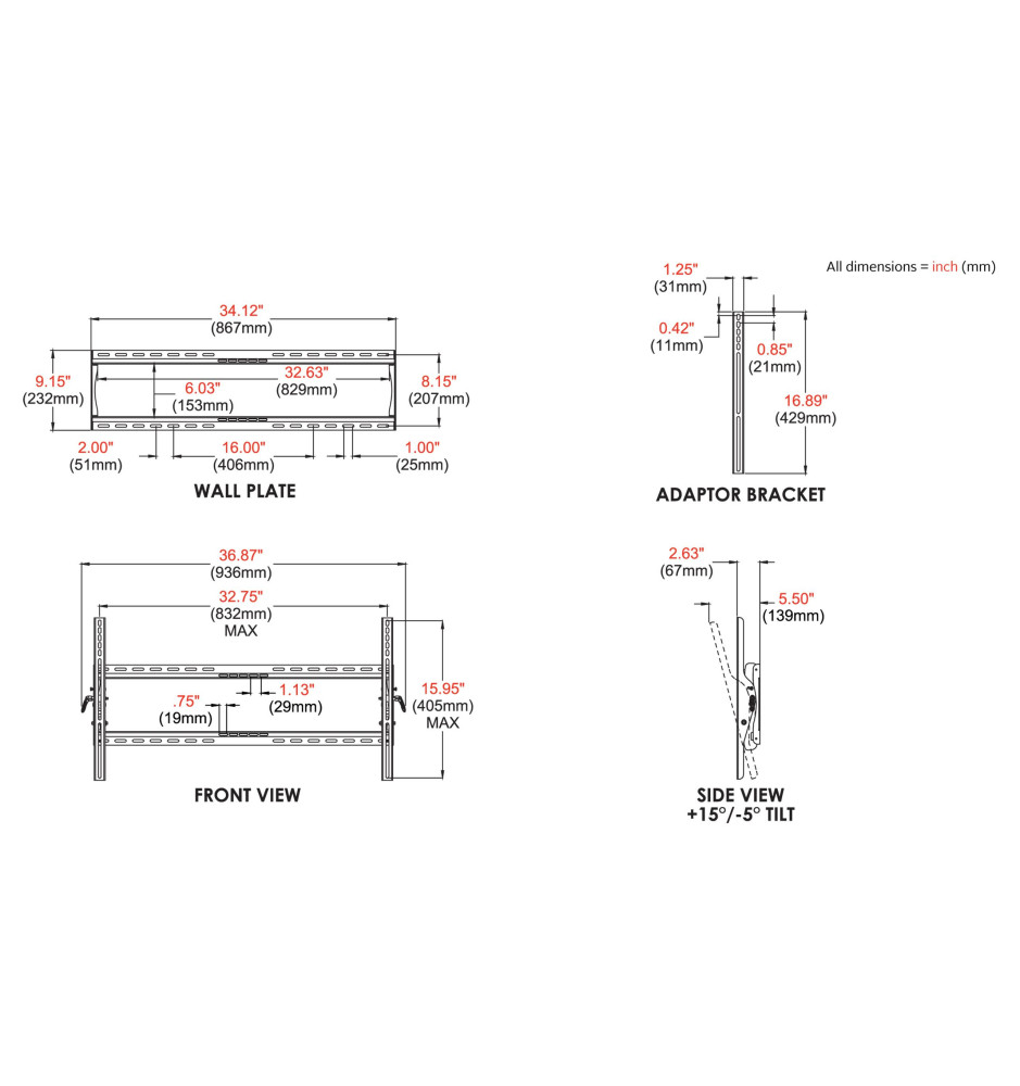 Uchwyt ścienny Peerless-AV PT660 posiada certyfikat UL i został przetestowany pod kątem czterokrotności podanej nośności (91 kg). Jest dedykowany do montażu telewizora bądź innego ekranu o przekątnej od 39" do 90". Zgodność ze standardem VESA do 800x400mm oraz szeroki rozstaw otworów montażowych do 832x405mm sprawia, że uchwyt jest kompatybilny z większością telewizorów.