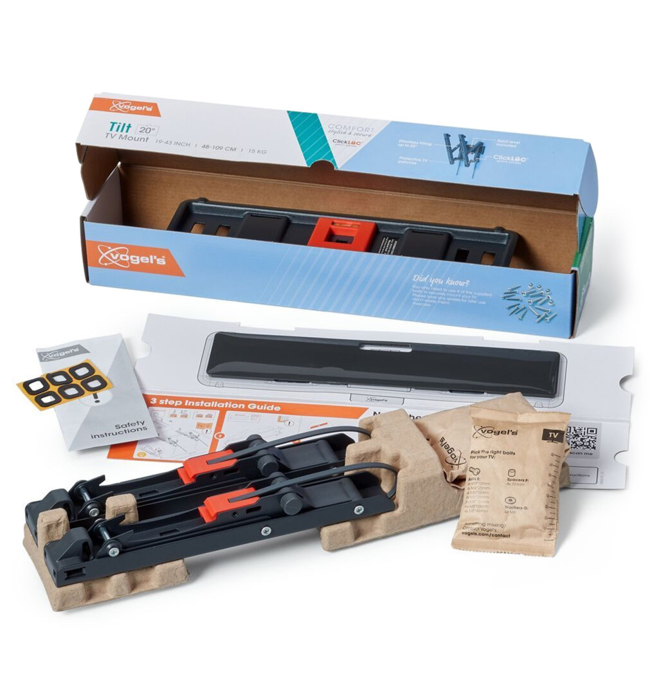 Uchwyty do telewizorów z serii Comfort są łatwe w montażu i sprzedawane z zestawem niezbędnych akcesoriów instalacyjnych, obejmującym: zintegrowaną poziomicę, ochronne podkładki pod telewizor, szablon do nawiercenia otworów, czytelną instrukcję instalacji oraz kołki i wkręty Fischer® DuoPower.