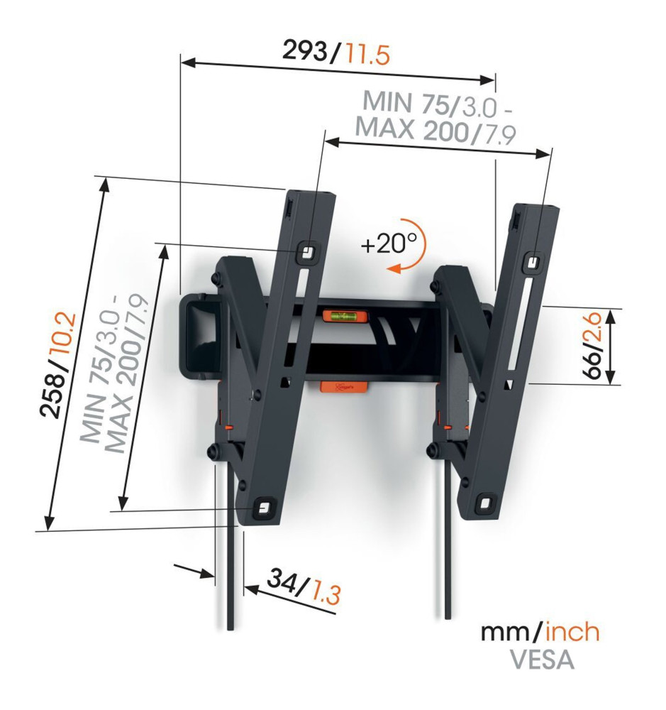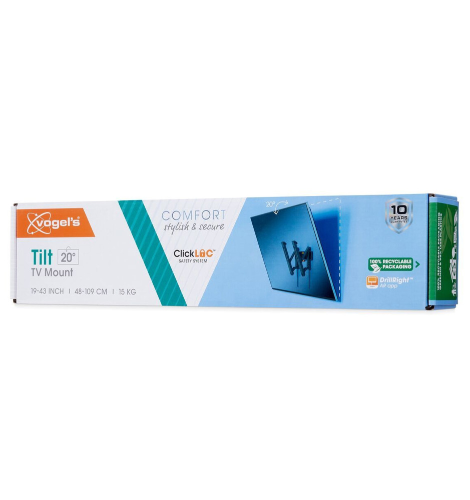 Stylowy i wytrzymały uchylny uchwyt ścienny z serii Comfort z funkcją blokowania ClickLoc™, dedykowany do mniejszych telewizorów o przekątnej ekranu od 19" do 43" i wadze do 15 kg. TVM 3213 jest uchwytem oferującym możliwość pochylenia ekranu do 20°, zapewniając zaledwie 34mm odstępu między telewizorem a ścianą oraz łatwy dostęp do przewodów.