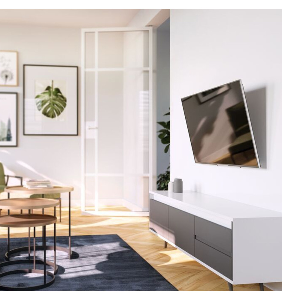 Wyróżniający się doskonałym designem i wysoką trwałością, uchylny uchwyt TVM 3213 z serii Comfort gwarantuje bezpieczny montaż telewizora na ścianie z możliwością pewnego zablokowania ekranu, dzięki funkcji ClickLoc™. Jest kompatybilny ze standardami VESA oraz posiada certyfikat TÜV. Dzięki regulacji pochylenia ekranu do 20°, umożliwia montaż telewizora na większej wysokości, np. w sypialni.