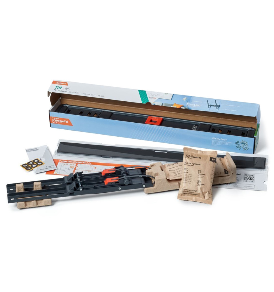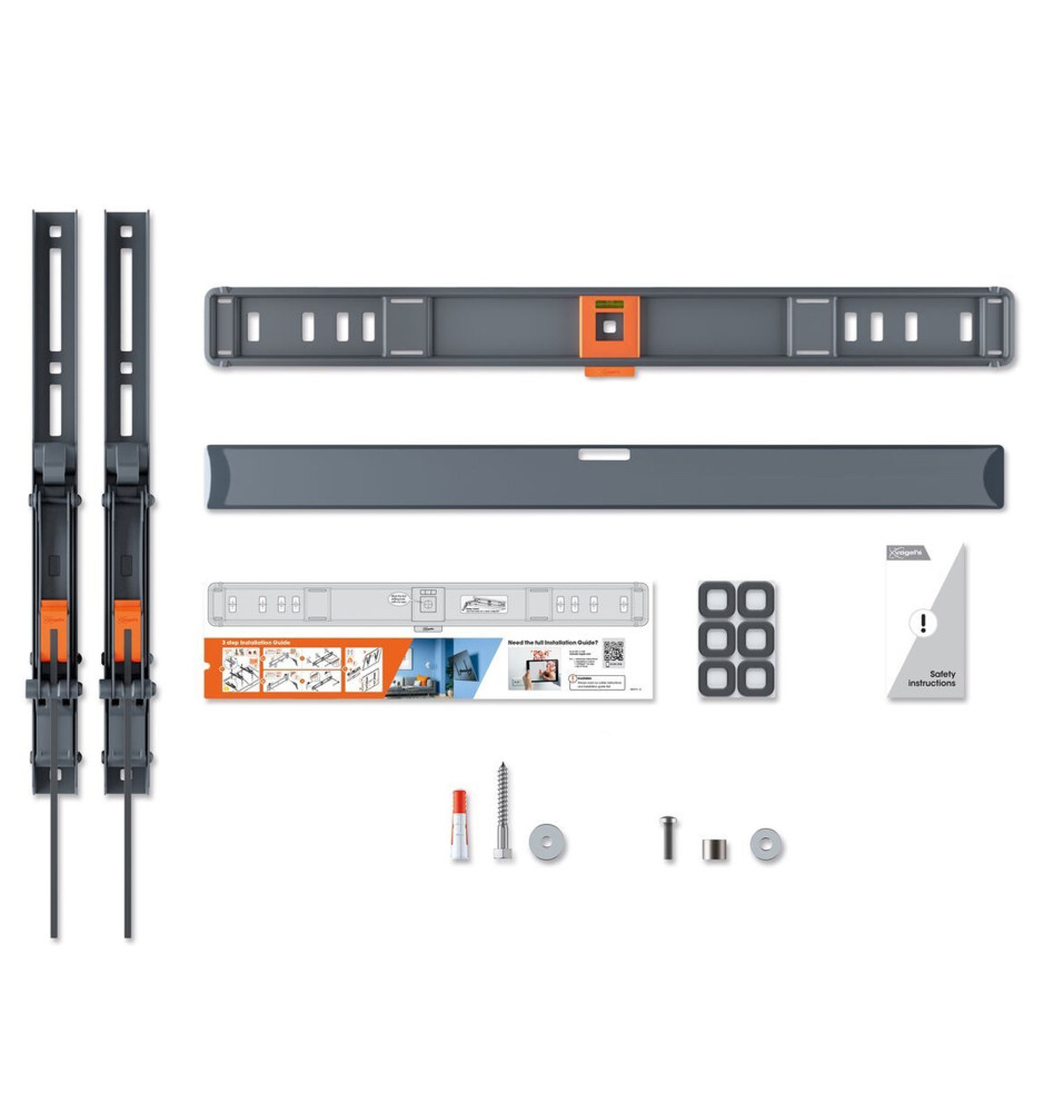 Uchwyty do telewizorów z serii Comfort są łatwe w montażu i sprzedawane z zestawem niezbędnych akcesoriów instalacyjnych, obejmującym: zintegrowaną poziomicę, ochronne podkładki pod telewizor, szablon do nawiercenia otworów, czytelną instrukcję instalacji oraz kołki i wkręty Fischer® DuoPower.