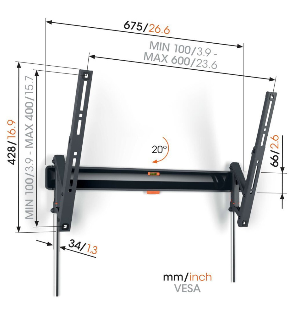 Stylowy i wytrzymały uchylny uchwyt ścienny z serii Comfort z funkcją blokowania ClickLoc™, dedykowany do większych telewizorów o przekątnej ekranu od 40" do 77" i wadze do 35 kg. TVM 3613 jest uchwytem oferującym możliwość pochylenia ekranu do 20°, zapewniając zaledwie 34mm odstępu między telewizorem a ścianą oraz łatwy dostęp do przewodów.
